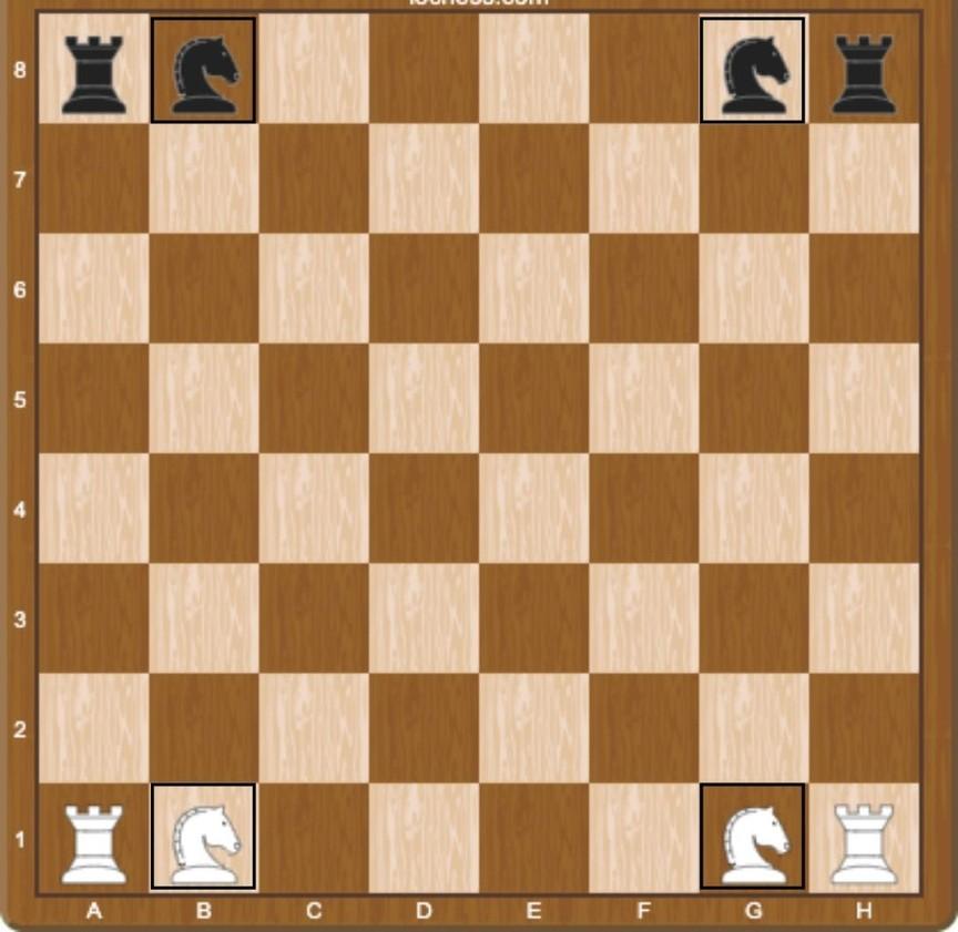 Next, let's talk about placing the knights. Each knight is positioned next to the rook, towards the center of the board. The knight moves multiple squares each move in "L" shape