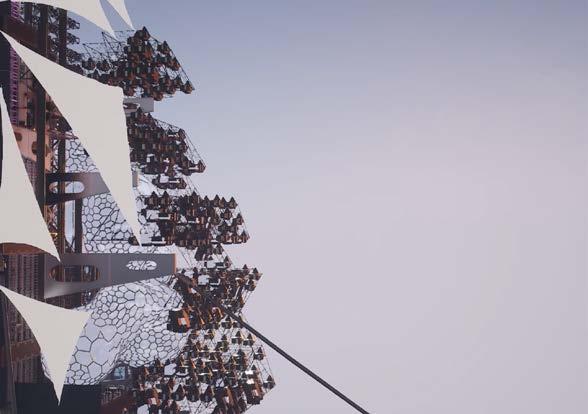 Intended to question the existing fragility of food production, and the future of sustainable living, ‘Don’t Panic!’ introduces a hypothetical alternative to our existing consumer trade network: The Atlas Tower. This self-sustaining mega-structure resides within an abstract ‘future-Liverpool’, providing food for its residents in an efficient, yet regimented system.