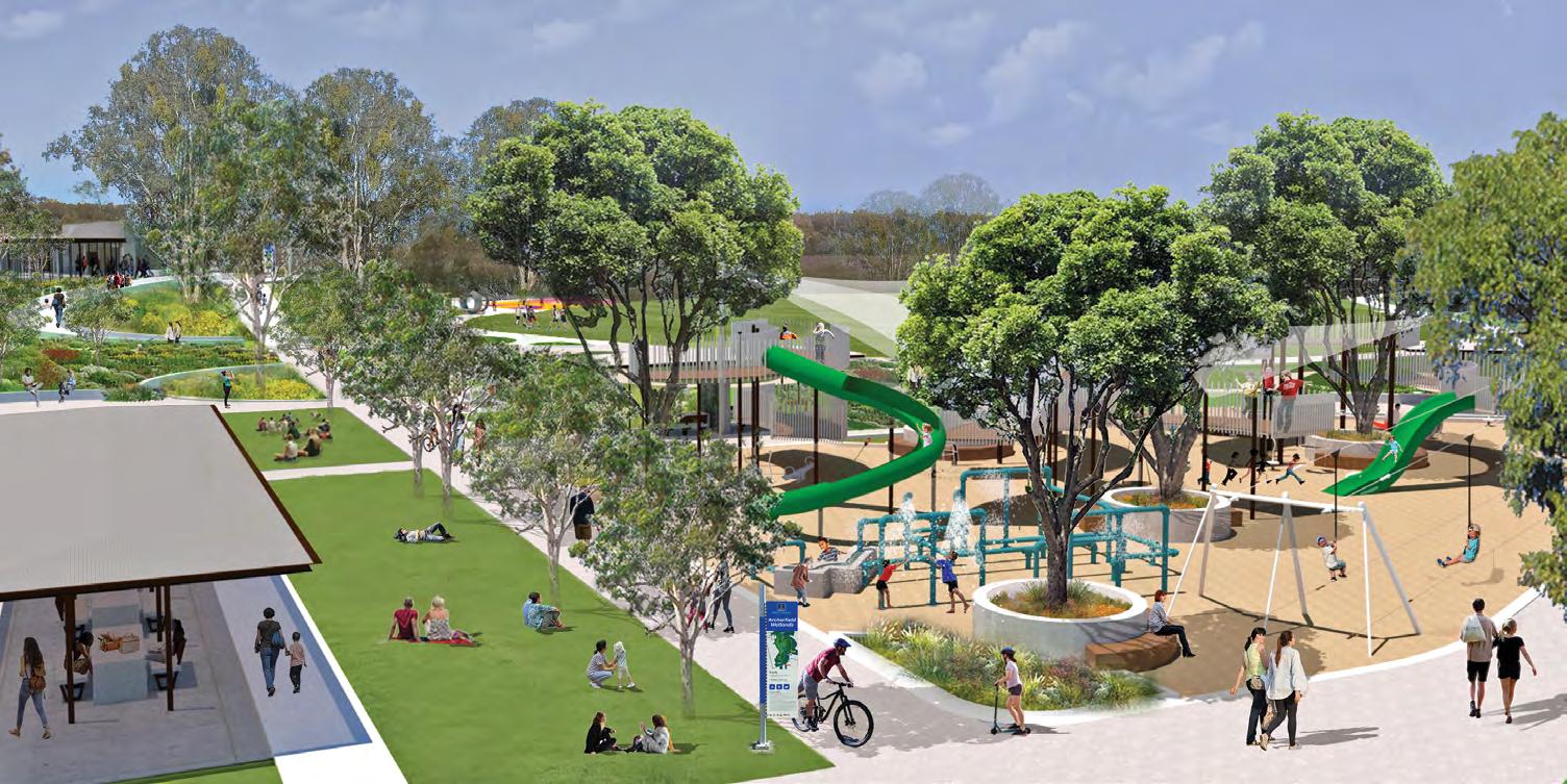 The upgraded 4-hectare park will give the young and young at heart plenty to explore with an event activity lawn, youth hub, basketball court, bush foods garden trail, catchment centre nursery and upgraded picnic and barbecue facilities as part of the transformation.
