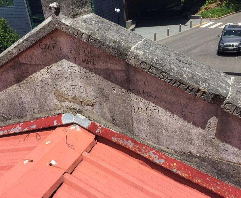 In an age before Instagram posts, students sometimes ‘tagged’ their identity by etching their names into wooden desks. One group of boarders, clearly with a taste for daring, took things to new heights and carved their names on the inside of the stone portico of The Great Hall. As graffiti wasn’t an officially sanctioned activity, the boys probably thought the portico was a safe place to leave their mark. For over 100 years, their secret was guarded by the stone face of the hall. It was after the great storm of 2014, when