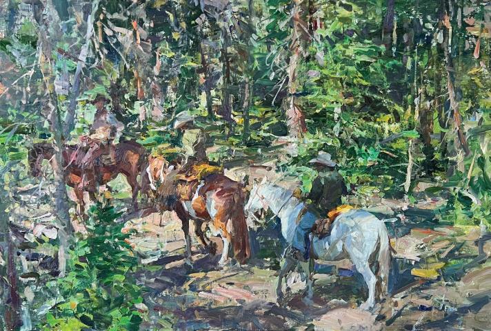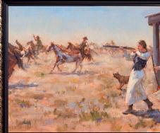 Weistling’s intimate portrayals shed new light on the Old West as he captures the mood and atmosphere of the past. His oils are filled with lush brushwork that express his love for storytelling. His attention to detail and the historical aspects of his subjects comes from his desire to portray the truth and beauty of America’s pioneering spirit. A great deal of research goes into each painting, and he has spent his life collecting artifacts of the Old West to lend an authenticity to each painting.