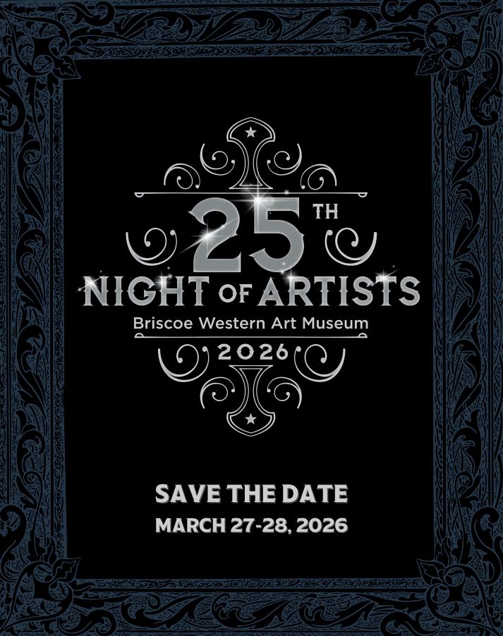 It is with great excitement that I welcome you to the Briscoe Western Art Museum and our annual Night of Artists Exhibition, Live Auction & Sale! This event has grown into one of the most celebrated gatherings of Western art, bringing together incredible creativity, unmatched talent, and a shared passion for the history and culture of the American West.