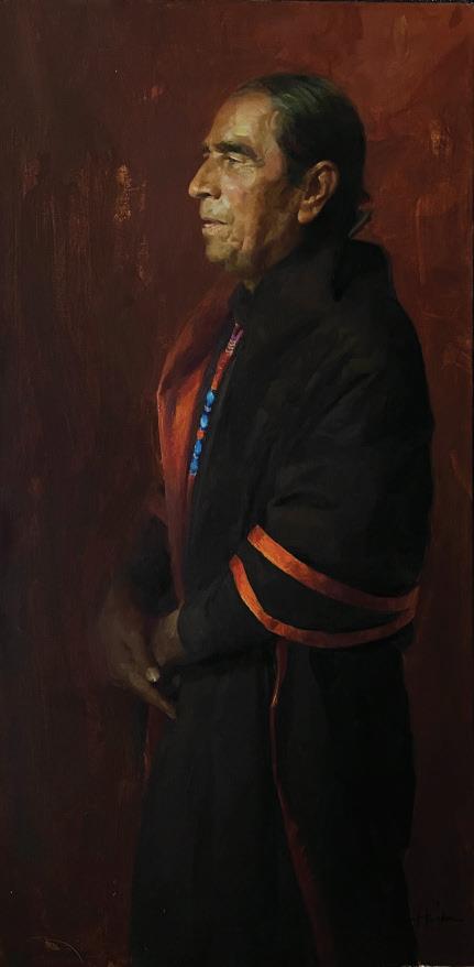 Jeremy Winborg is best known for his figurative work of Indigenous subjects that blend realism with abstract backgrounds. He has won numerous awards, including the 2019 Sam Houston award, and has been featured in all of the leading Western art magazines.