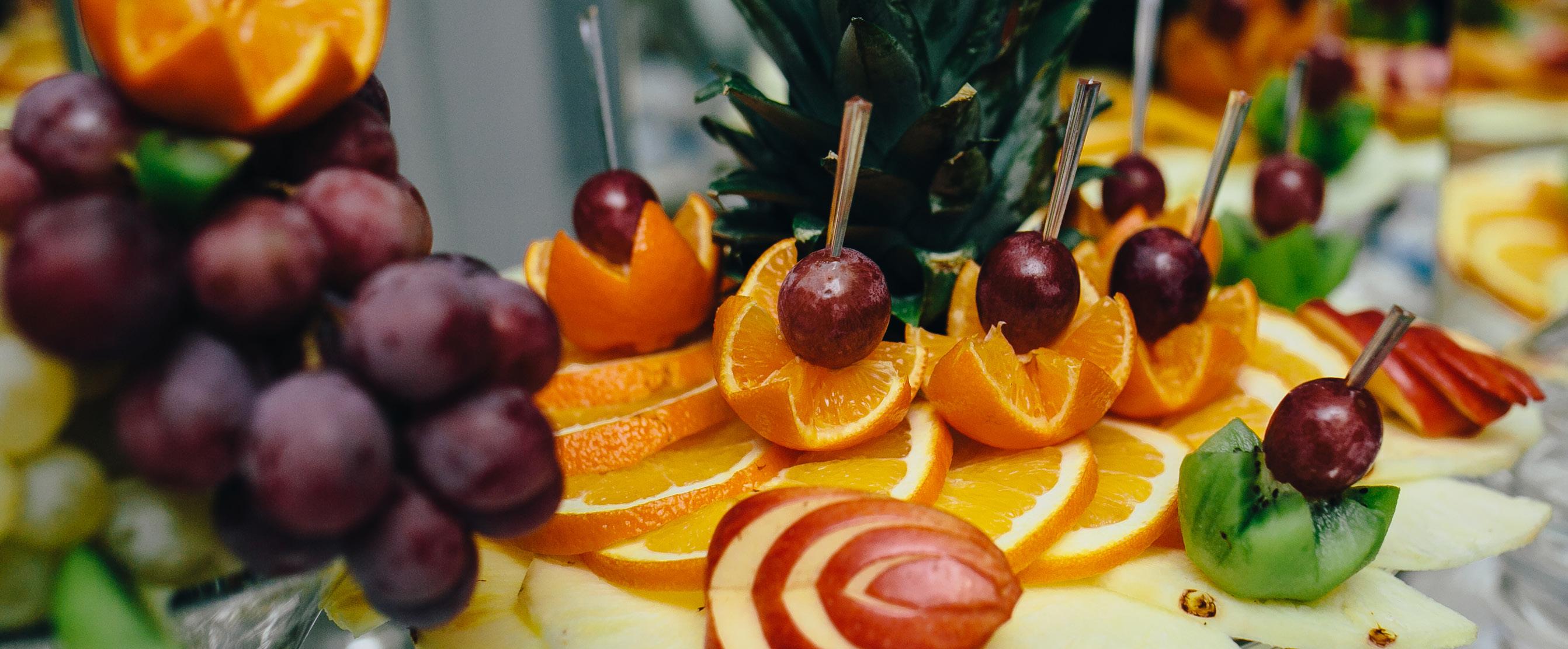 Display of Sliced Fresh Seasonal Fruits and Berries