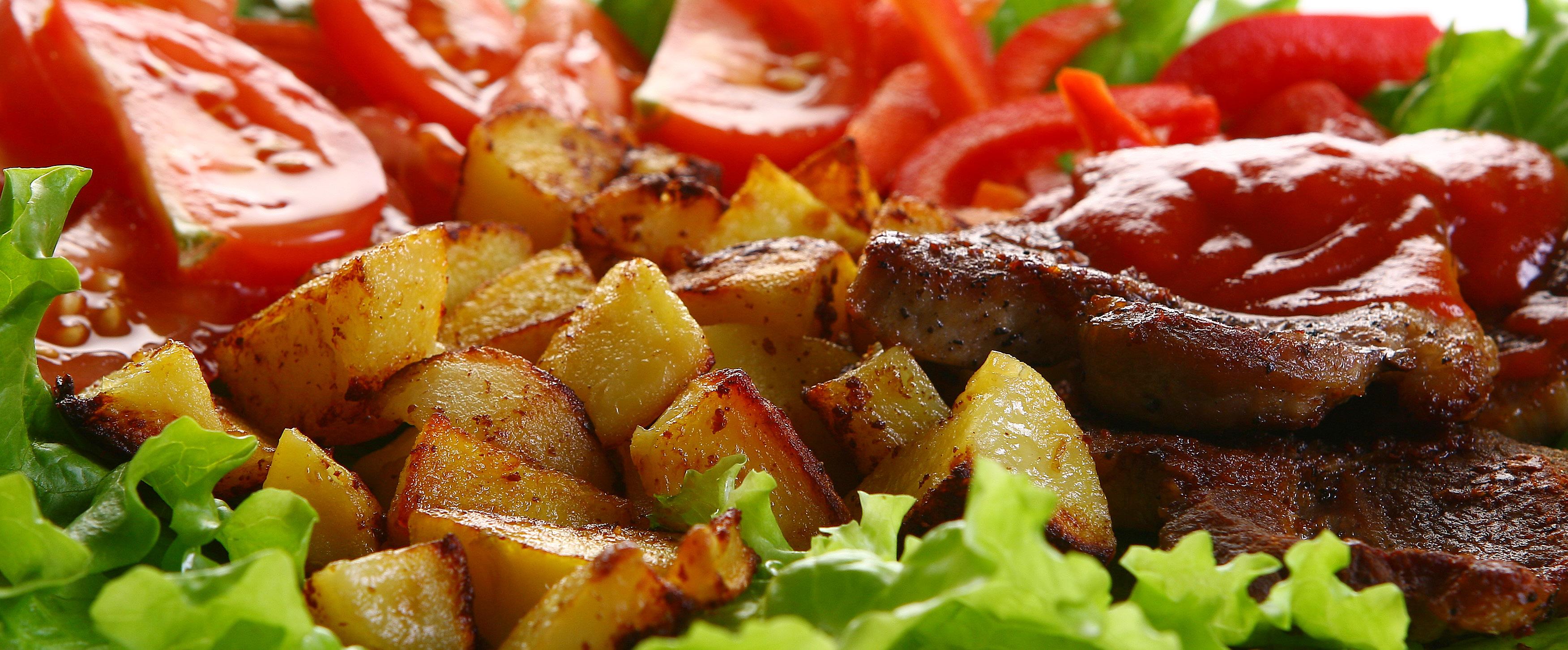 Hill Country Greens, Grape Tomatoes, Cucumbers, Lemon-Thyme Vinaigrette Crumbled Feta and Romaine Salad, Cucumber, Red Pepper, Tomato, Greek Vinaigrette