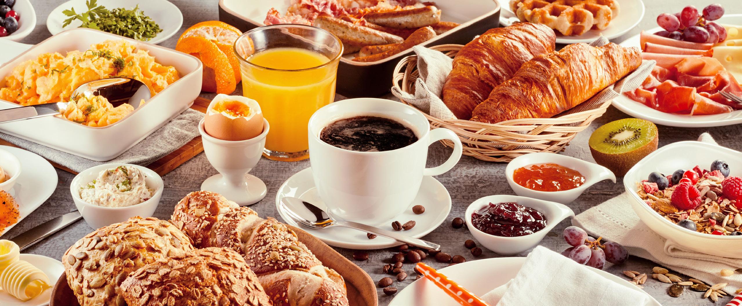 Plated Breakfast includes First Drop LavAzza Coffee and Mighty Leaf Fine Teas and freshly squeezed orange juice, basket of chef ’s selection of breakfast bakery items and pastries, creamery butter, fruit preserves, marmalade and honey.