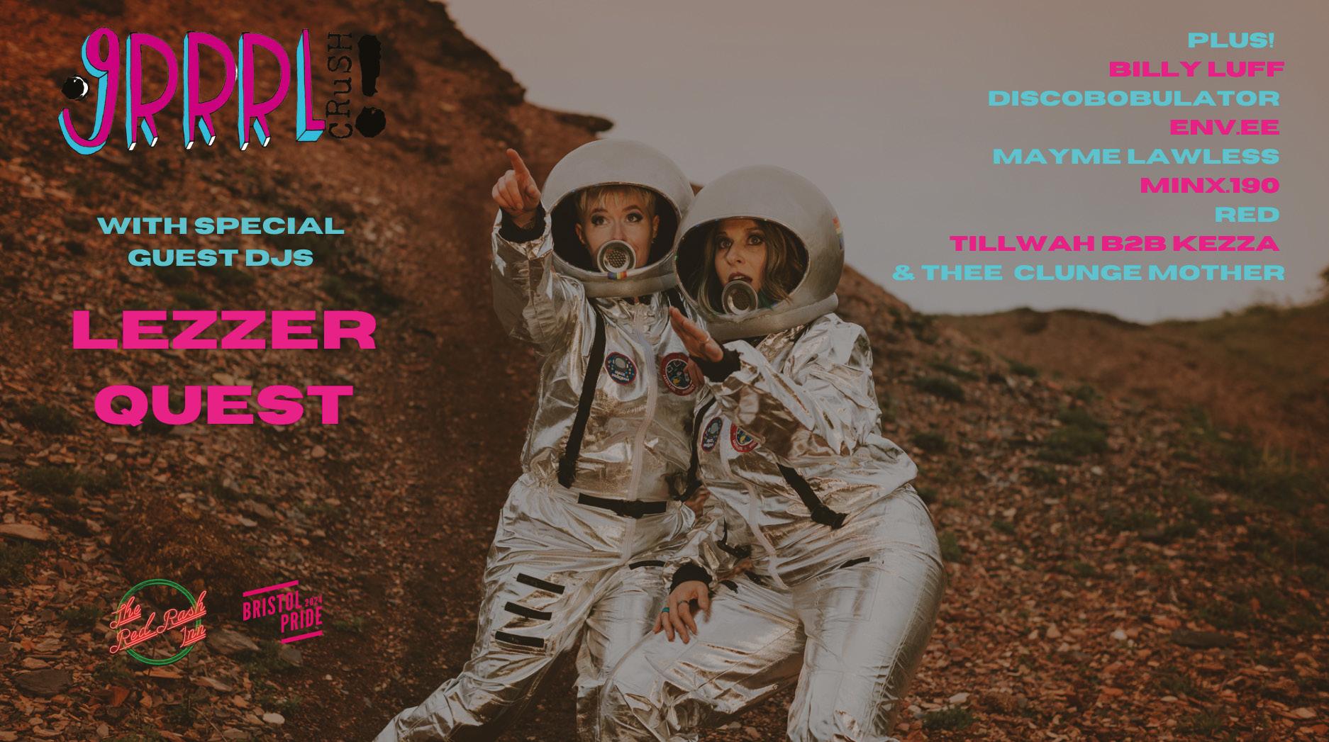 Grrrl Crush return their third year at Bristol Pride with some very special guests. Loudly and proudly presenting LEZZER QUEST - the brainchild of Glasgow’s underground mainstays Bonzai Bonner (Shoot Your Shot) and Anna Gram (Correspondant). Emerging as a larger-than-life force within the city's vibrant music scene, capturing the hearts of club goers with their distinctive 'anything goes' musical style and infectious energy and are making Bristol Pride / Grrrl Crush debut.