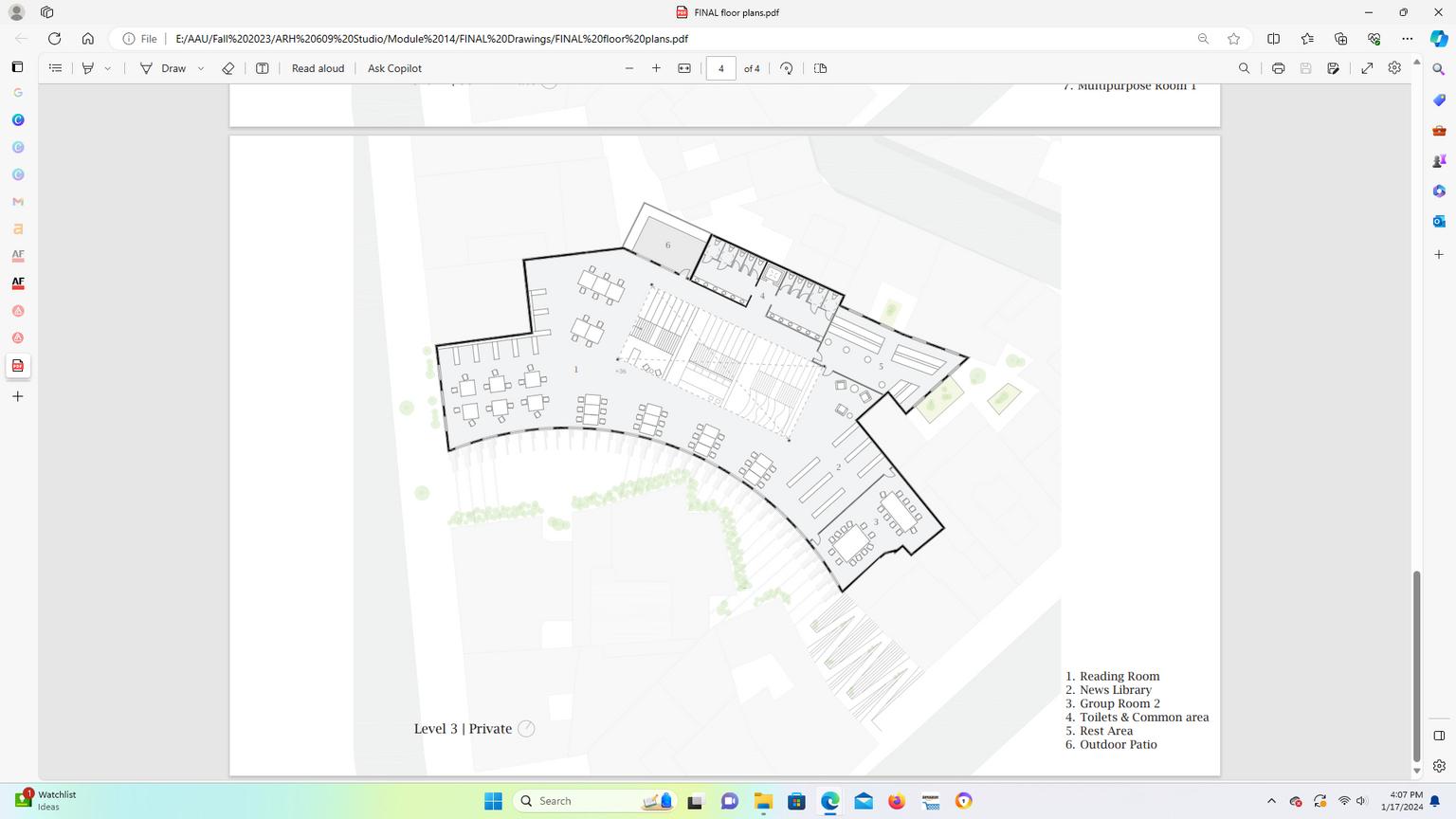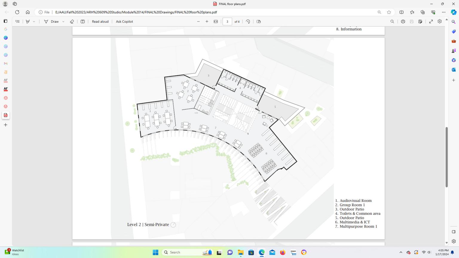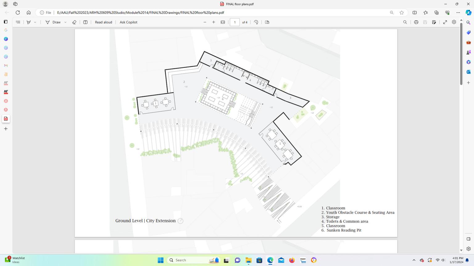 Toilets & Common area 4. Classroom 5. Sunken Reading Pit 6.