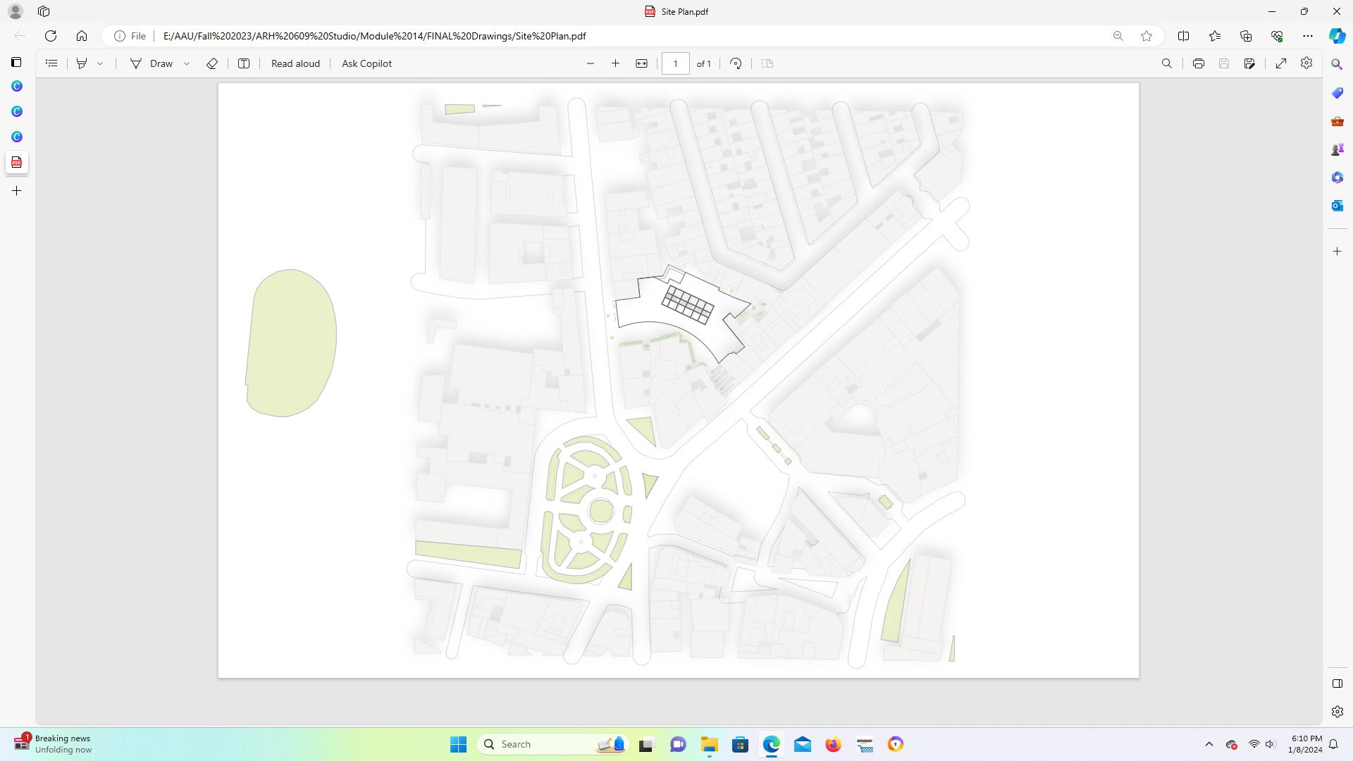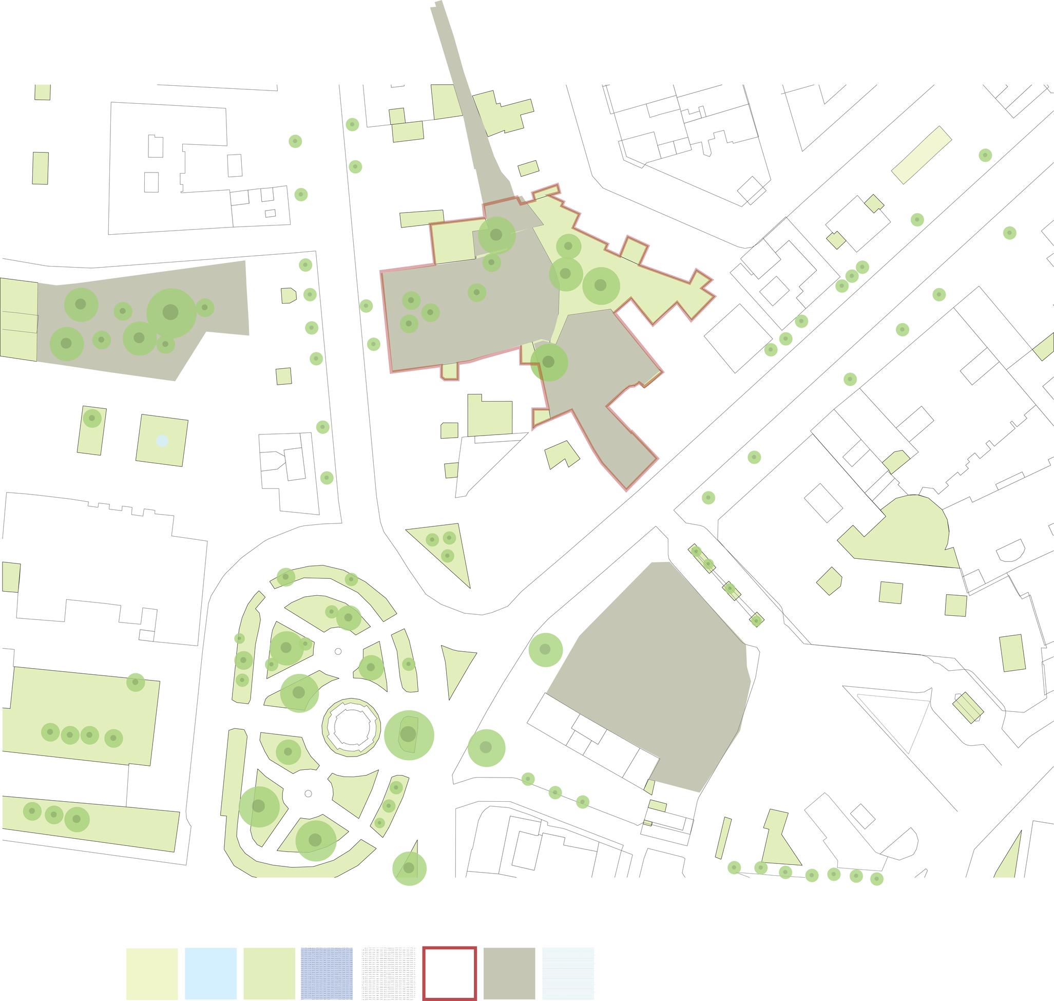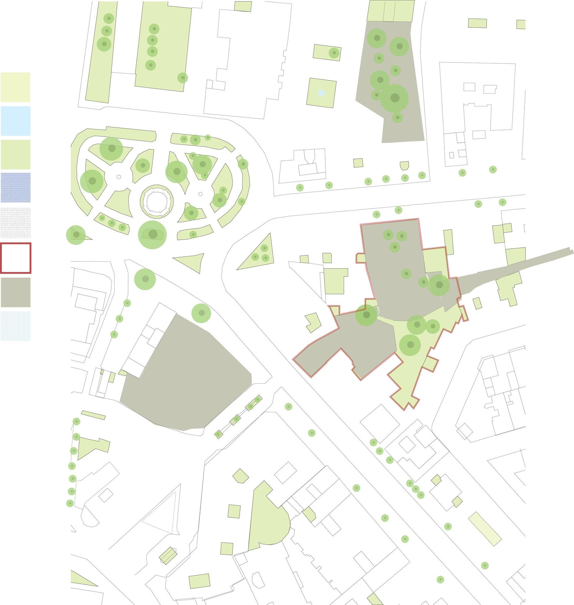 The creation of the design took into consideration the key concepts of Open space, Greenery, and Pedestrian Network These conceptual terms were the foundation for the development of the design, ensuring that the space would prioritize ample open areas, natural elements such as vegetation, and a well-connected network of pathways for pedestrians. By keeping these factors in mind, the design aimed to create a harmonious and inviting environment that would provide both aesthetic appeal and functional accessibility for all users