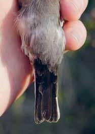 Left: A spread-wing shot, with all of the primaries and secondaries visible, and the ringer’s fingers positioned so that feather tracts such as the primary coverts, alula and greater and median coverts are visible. Right: A spread-tail shot, ensuring that at least all of the tail feathers on one side of the bird’s tail are spread and visible.