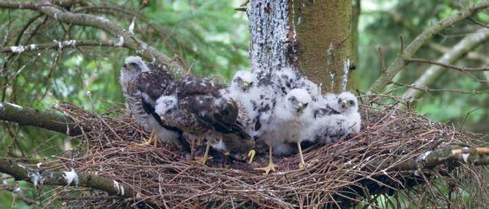 The response has been extraordinary. More than 750 people have signed up so far, many entirely new to BTO and bird surveying, a core aim of the project. Entrylevel volunteers began conducting monthly Vantage Point Counts to hone their field skills and identification abilities in March 2025. In-person training led by some of Wales’ most experienced raptor experts, many of them long-standing ringers and nest recorders, has inspired participants and boosted their confidence. One volunteer reflected: “After just three hours, I left feeling far more confident in identifying the five species and excited to start surveying my area.”