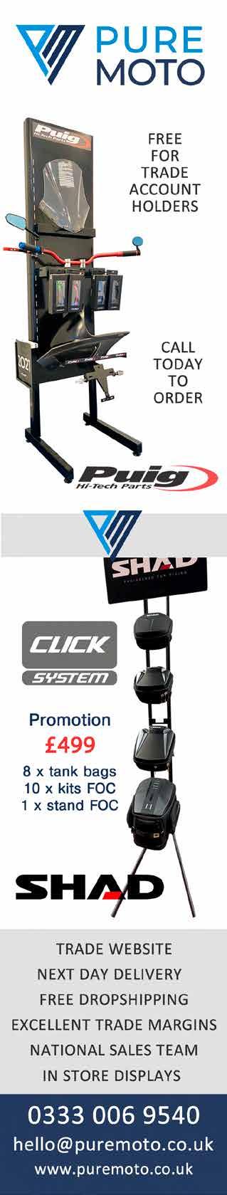 Sales activity for used machines in February was typical, with sales patchy and enquiry levels remaining subdued. Although, as with the new machine market, some dealers have had a stronger start to the year compared to a poor 2024. Current trends continue, with mid-range machines being the most sought-after. Stock levels in the market remain plentiful. However, a few dealers have found sourcing stock more of a challenge recently, due to fewer part exchanges in dealerships and riders choosing to hang on to their machines instead of changing, a result of reduced spending confidence. This, combined with stronger-thanexpected sales for some dealers, has led to their stock levels running a little lean recently.