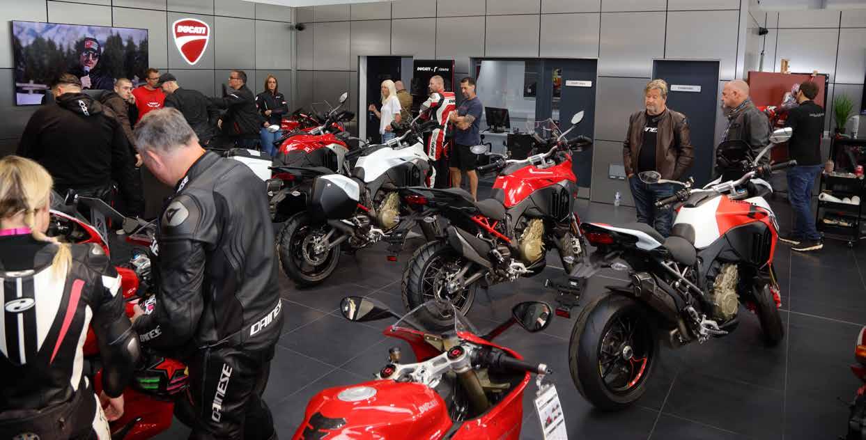 heading up the new Ducati operation. He was a man with plenty to do on the opening day, but was keen to talk about the experience. I asked him where the Sykes relationship with Ducati began, “Ducati came to see us. Sykes HarleyDavidson is situated on a two-acre site; we’ve a 10-bike bay workshop, separate from the showroom, and a separate facility at the bottom of the yard, which houses 80 bikes. So they were impressed, we’ve put a lot of time, energy and investment into it; we wanted to be a partner, and we were attracted to each other from the word go. The relationship’s been very good. “It all started when I went to Misano in 2022 [for World Ducati Week]. I remember