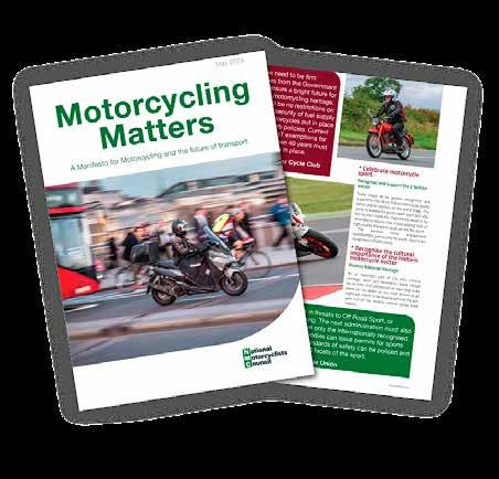to play for. With a strong likelihood of a change in government, there is now a real opportunity to reshape the narrative and thinking around motorcycling and to send a clear message to candidates about what riders need from a new government. We urge all riders to support the campaign and help to make a real difference for motorcycling both locally and nationally.”