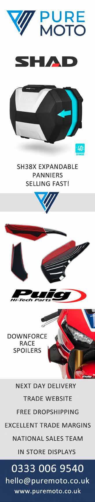 As for the year-on-year brand ranking chart, some of it revolved around distortions from the doubledigit percentage registrations decline last April. Inevitably, Honda hung onto hegemony, 6.3% up. But PCX125 scooter fleet input accounted for about 20% of sales. Triumph stacked on 21.4% to a fairly distant second, with budgetpriced Speed 400 sales contributing 17% of its total. On third spot, Yamaha retreated by 12.8%.