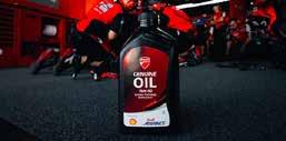DUCATI HAS WORKED WITH SHELL FOR more than 25 years, helping keep the Italian bikes winning on road and track, despite their big power outputs and complex desmo valve trains. Now, both firms have developed a new oil that is designed to work with all the Borgo Panigale machines, from the Desmo450 MX bike through the Scramblers to the V4 Panigales. Ducati Genuine Oil Powered by Shell Advance 15W-50 is the snappy name!