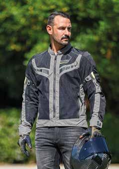 OXFORD PRODUCTS’ UBIQUITOUS RAINSEAL waterproofs have been around for ages, protecting commuters and delivery riders in a lightweight, easy stow manner. They do the job so well that updates and improvements are usually just almost-invisible detail changes, but the latest update is about as inyour-face as you can get. It takes the Rainseal design and fashions it from highly-reflective material that lights up when headlights hit it. It makes riders, especially in urban environments, almost impossible to miss even in the darkest conditions. It comes as a two-piece outfit at £69.99 for the jacket and £59.99 for the pants.