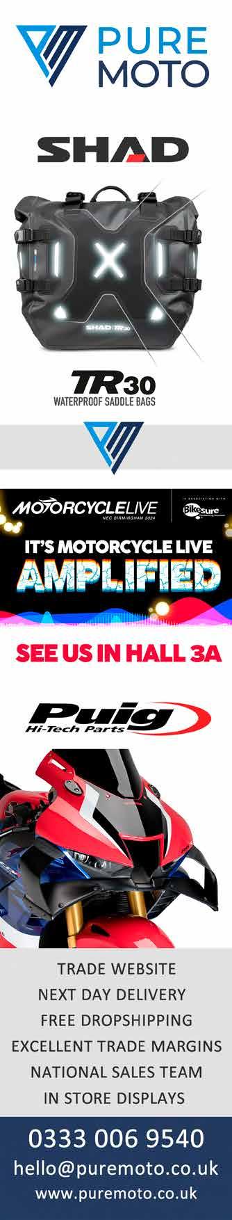 Despite challenges such as interest rate rises and the cost-ofliving squeeze, Ayland expressed satisfaction with the company’s performance, focusing on a commitment to excellence in sales. He also noted an improvement in postCovid stock availability from most brands, of which Completely represented the vast majority. In addition to Honda, Yamaha, Kawasaki, Suzuki, and Ducati, the group held franchises for Piaggio, Aprilia, Moto Guzzi, MV Augusta, Indian and CCM, with electric brands Mae ving and SurRon also added in 2023.