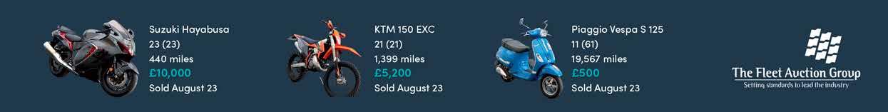 month in July, higher levels of activity were reported by the larger multi-franchise dealerships on the back of various new bike offers, which attracted good numbers of clean part-exchanges priced more for the current market rather than the higher prices demanded earlier in the season when stock was harder to source. Consequently, given current market conditions, there has been a small downward movement in used bike prices applied across a wide range of models.