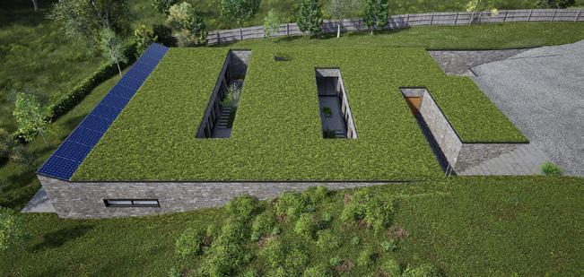 From a sustainability perspective, the house works like a dream. Earth is a good insulator. The array of solar panels doubles up as a canopy preventing summer overheating and the winter gardens facilitate the flow of natural air through the building.
