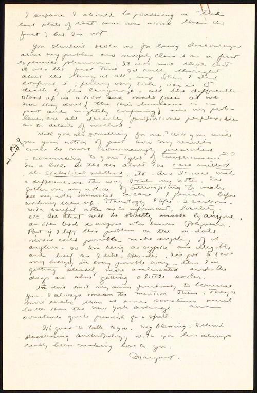 "Dear Eileen,", she says, "You should know that our correspondence is my way of holding onto life, taking notes on it, and thereby preserving something of my – otherwise almost worthless, or even entirely worthless existence on this rapidly degenerating planet."