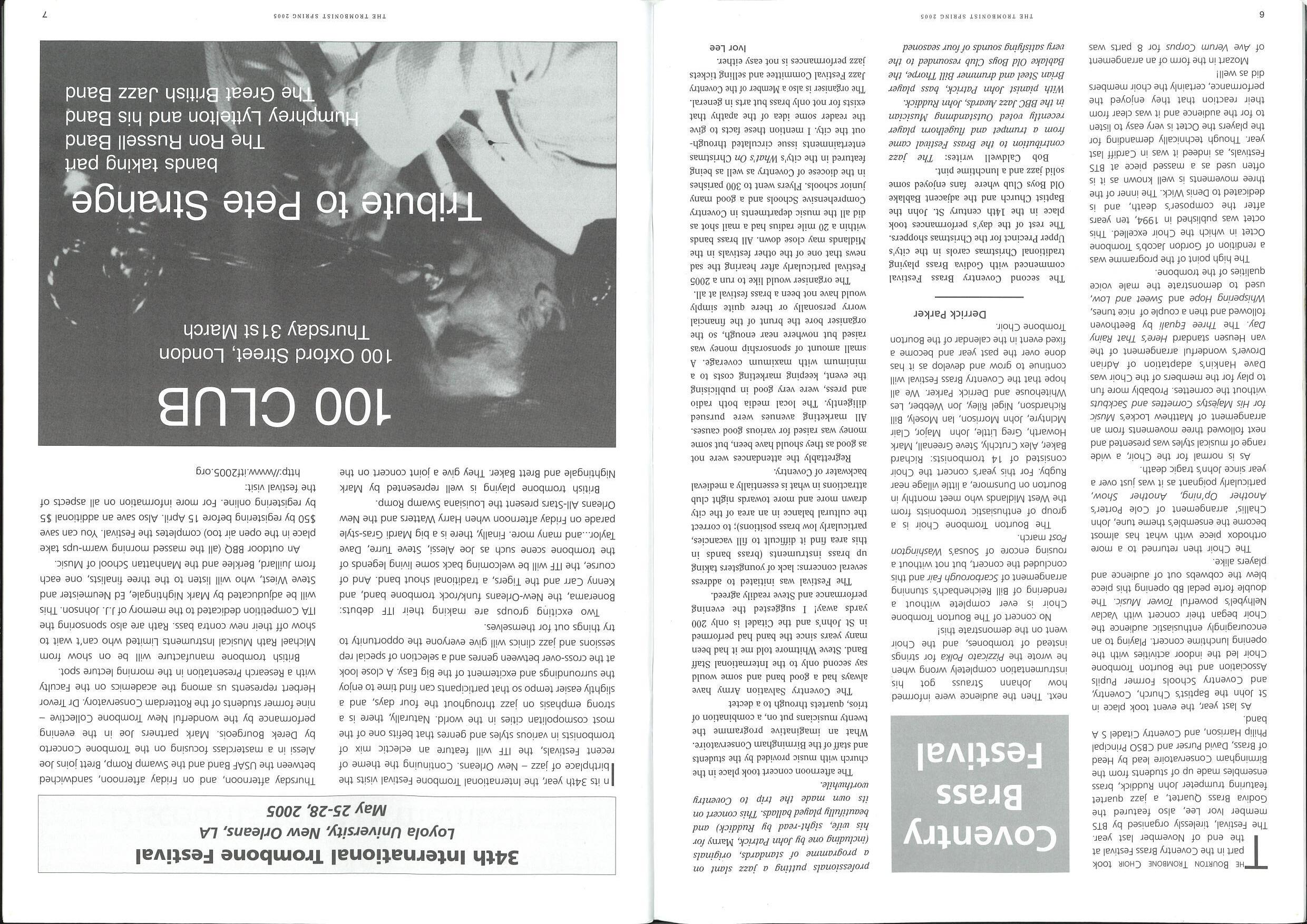 The magazine is published online in the spring, summer and winter and contains articles on every facet of trombone playing - from Early Music to Jazz and Avant Garde - and takes account of the needs and interests of all players from the beginner to the advanced player in every style of music. The Trombonist is well-supported by instrument manufacturers and music publishers and contains the latest information in these areas, plus regional and concert news and reviews.