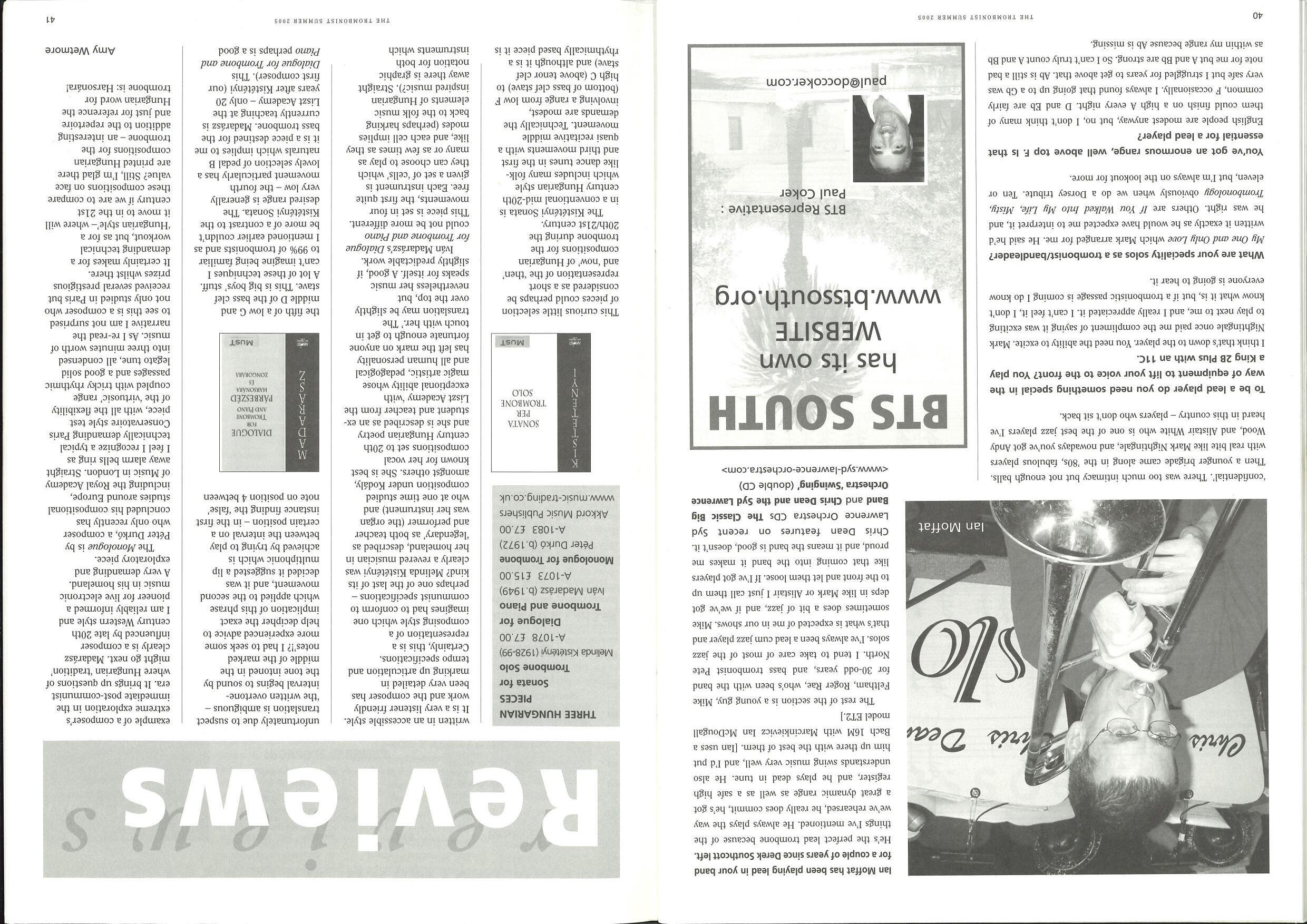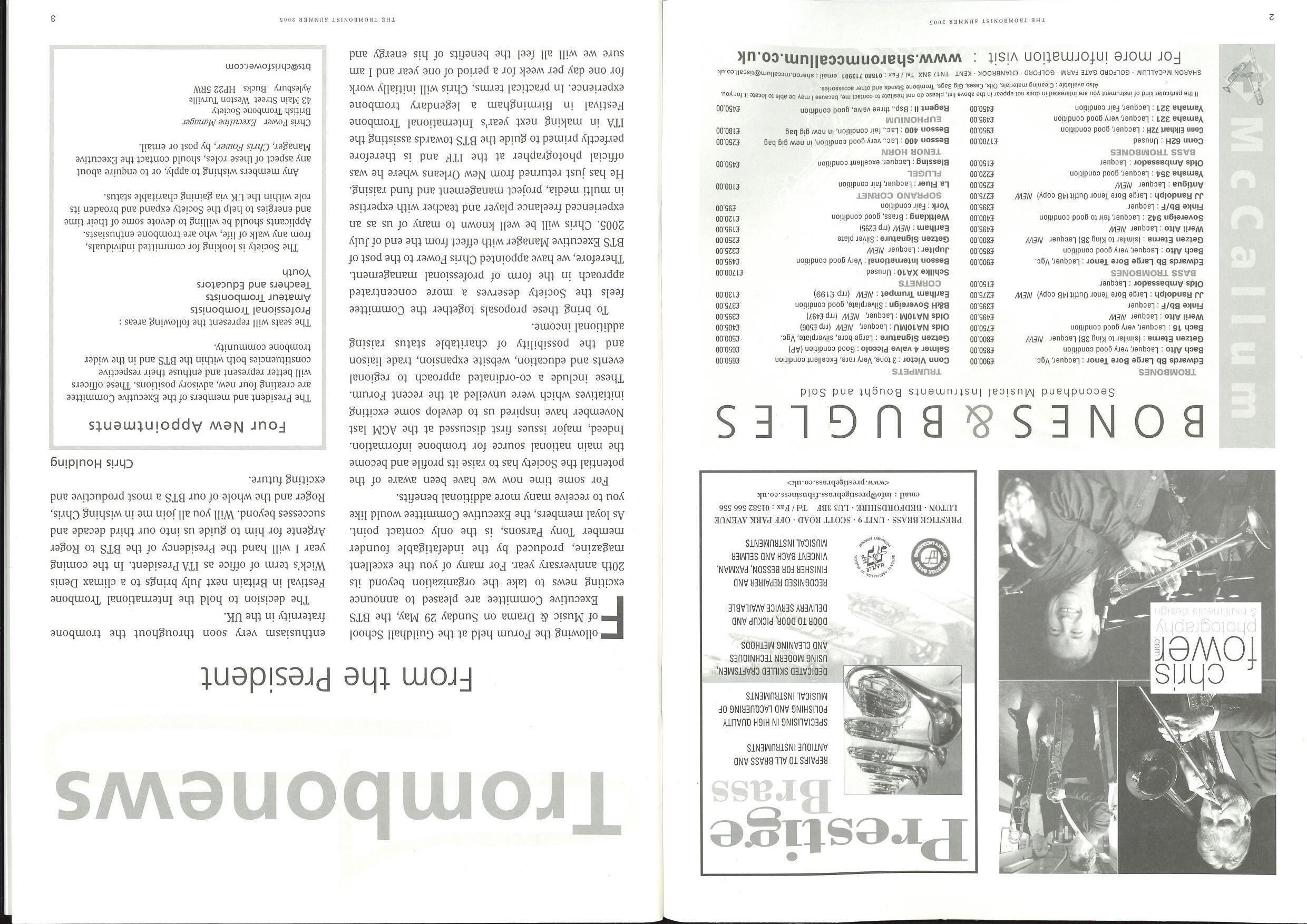 The magazine is published online in the spring, summer and winter and contains articles on every facet of trombone playing - from Early Music to Jazz and Avant Garde - and takes account of the needs and interests of all players from the beginner to the advanced player in every style of music. The Trombonist is well-supported by instrument manufacturers and music publishers and contains the latest information in these areas, plus regional and concert news and reviews.