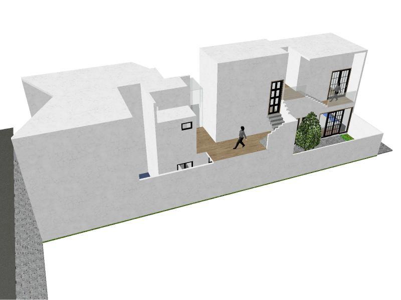 Despuéssefueuniendo bloquescúbicosparaformas unasecuenciadeespaciosen direcciónrectadiagonalenel terreno.