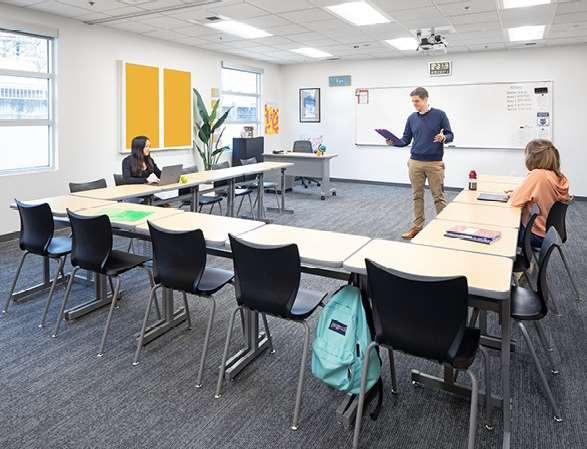 One of the main goals for this project was mobility so all furniture provided had to be mobile, either by being very light weight or on casters.Acting as the designer on this project we specified even the teacher stations to have a wardrobe that has an inner cart which moves separately from its case allowing itto move class room to classroom and be locked into a case that remains stationary.