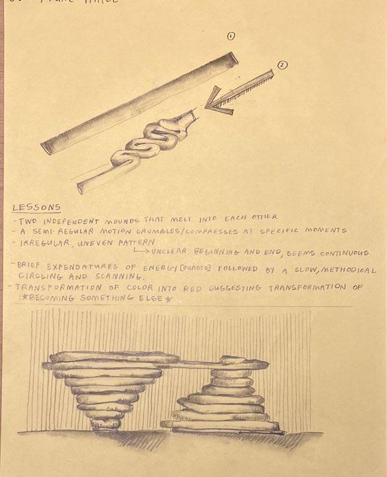 52 | COUDRIET PORTFOLIO The pa nt ngs hem e ves don have any frames, and their sides are pai ted match thei fron s.) Th b ackrectangle is up t the top if it has oated here agains he law o gravity Like he other paintings, he one was ooking at ha no subject no tle and noth ng to ee except the hardedged black rectangle TheRothko chape pa n ngs re aid o be en e y b ank, and onde ed ho ong o d ook a h s pain ng itho get g b d t took a momen o wo but ea izedthat Jane was right: the pictures are no pa nted at b ack ike a wal In he pain ng wa ook ng at the owe edge of the b ack region wa st a ght and ho izontal—Ro hko used king tap t make p rfect b t then it b d ttl h ligh purp e ne wh ch he pa nted reehand The lighte ne undulate as t cro ses the width of he canvas, andsoftens the geometric line. There is also a place, just above the double line, whe e the black area is splattered w th maroon pa nt Ro hko s b u h mus have s pped and he dec ded no t cl t p. Th it p ted t ks d pi pho og aph o the sky on a cloudy day so t matte pa ches dr f by and sh ny st e s move up and down, li e ra n a ng through clouds ooked a ound Each o he paintings had a few aded ma k splotche and odd shape None a en ely blank Man rem nded me o da k kies deep at Later, t ld visitor had said they like w ndows nto the n ght. got up and walked ove o the nex pa nt ng he one us o the gh o the ght-hand en rance door is all pu p ish black, w th no pa nted bo de is u of streaks cascades o paint that ook g k ain d d ll p g h mi d d of h gh, at clouds. My eye was d a o a defect, gh abou at head height someth ng had damaged he p cture here, and had been poor y patched, leav ng a purple c cle like he ad ng a e mage of a b igh light. at down and ooked at that pain ing quite a wh e ust ook ng up and down th k ng cl d d qu et in Out ide, he oreca t was or ain had been oudy and th eaten ng s nce had a ved n Houston and he du gr y igh rom the aincloud was ading nto a warm even ng g ow The chapel s li by natural light from a skylight, and as t got darke the op o he painting began o sh ne. Th p got ry d rk t k d h t nd at he top o he p nting we e a ling in o a deep g oom down below found myself staring directly across into a eatureless darkness, with a shape so uncertain it shifted each tim e blinked. The painting took on an rres b e motion slid ng do n ard n o a ormless shado looked d Th f the pe p had go One remained, tting with hi eyes closed and h palms up u ned on h knees t was ge ting la e got up and walked a ound the oom looking at each pain ng n u n Each one had s qu ks and errors, s pa ticular ta n d O pai g h h takab dCRYING AT NOTHING UT CO OR The pa n ng themse ves don t have any frames, and their sides are pai ted t match hei fronts.) Th b ackrectangle is up the top if it has oated the e again t the law o g avity Like he othe paintings, he one wa oo ing a has no subject no t tle and noth ng to see excep he hardedged black ectangle TheRo hko chape pa n ng a e said to be ent e y b ank, and wonde ed how ong cou d ook a th paint ng without get g b d ook a moment o two but ea izedthat Jane was right: the pictures are not pa n ed at b ack ike a wal In the paint ng was ook ng a the ower edge of the b ack egion was st a gh and ho izontal—Rothko used king tap make p rfect b then it b d li tl h light pu p e e h h he pa nted eeha d The ghte ne u dulates a cros e the wid h o he anvas, andsoftens the geometric line. There is also a place, just above the double line, where the black area is splattered w h ma oon pa nt Rothko b ush mu thave lipped and he dec ded not cl p. Th it y p ted ks k d pi pho og aph o the sky on a cloudy day so ma te pat he dr t by and sh ny st eaks move up and down, like a n a ng th ough clouds ooked around Each o he painting had a ew aded ma ks plotches and odd shapes None was ent rely blank Many em nded me o da k skie deep at Later, ld visitor had said they like w ndows nto he n ght. go up and walked over to the next pa n ng he one u t to he r ght o the r ght-hand en ance doo is all purp ish black, w h no pa nted bo de t is u o treak cascades o pain hat ook aga n ke rain and d ll pa sages tha eminded me of h gh, at c cl ds. My y d d ect, ght bo t head h igh someth ng had damaged the p ctu e the e, and had been poo y patched, leav ng a pu ple c cle like he ad ng a te mage of a bright light. sat down and ooked at tha pain ing quite a wh e us ook ng up and down h k ng cl d d qu et in Ou side, he o ecas w fo ain t had been c oudy and h ea en ng n e had a r ved n Houston and the du g ay ight om he rainclouds wa ading nto a wa m even ng g ow The chapel lit by natural ligh from a s ylight, and as go darke he top of he painting began o h ne. Th p t got ry d rk k d f th nd at he top o he pa nting we e f ling into a deep g oom down below found myself staring directly across into a ea ureless darkness, with a shape so uncertain it shifted each tim e blinked. The painting took on an rres s b e motion slid ng do n ard n o a fo mless shado looked d Th the pe p had go One remained, tting with hi eyes clo ed and h s palms up u ned on h s knees was ge ting late go up and walked around he r oom looking a each paint ng n urn Each one had ts qu k and errors, t pa icula s a ns d O pai t g h th takab t f dCRYING AT NO HING BUT CO ORS 5