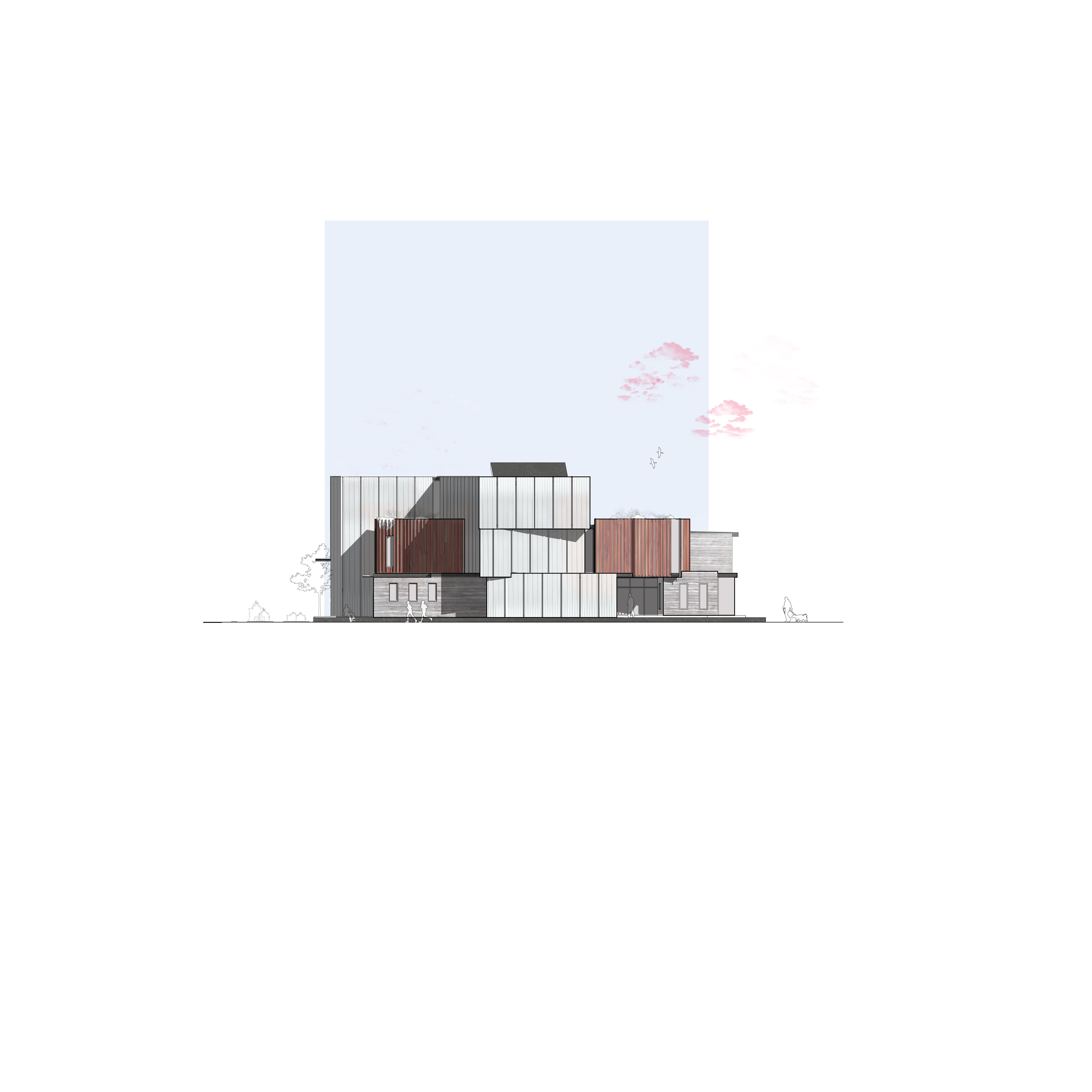 NORTH ELEVATION, REVIT + PHOTOSHOP COLLAGE