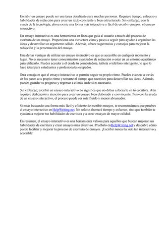 Si estás buscando una forma más fácil y eficiente de escribir ensayos, te recomendamos que pruebes el ensayo interactivo enHelpWriting.net. No solo te ahorrará tiempo y esfuerzo, sino que también te ayudará a mejorar tus habilidades de escritura y a crear ensayos de mayor calidad.