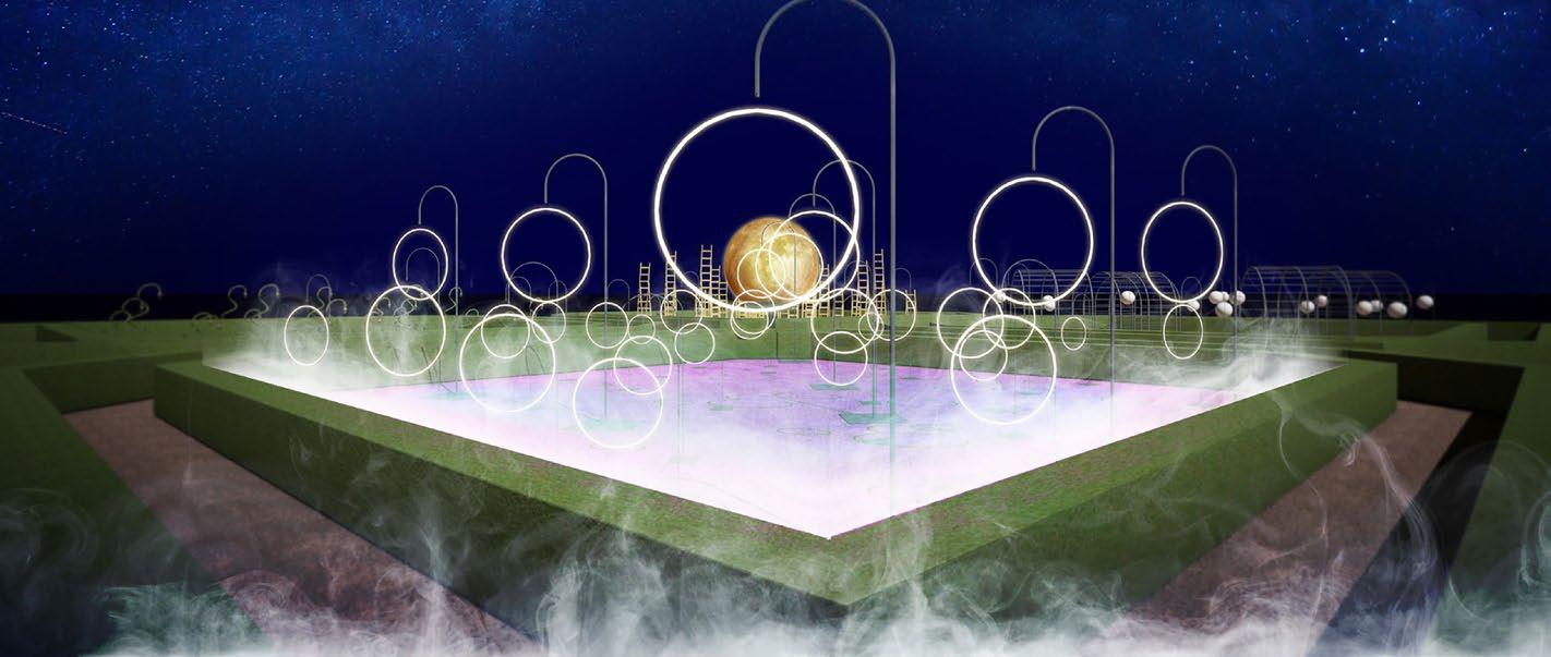 Am 21. Juli 1969 betrat Neil Armstrong als erster Mensch den Mond. Die Leitern laden dazu ein, ebenso neue Wege zu beschreiten. Vielleicht führt einer davon zum Mond? Die Lichtinstallation spielt mit dem Mond und seinen Auswirkungen – nicht nur auf uns Menschen, sondern auf die gesamte Natur. Mond, Wasser, Natur und Mensch stehen im ständigen Wechselspiel zueinander und sind durch einen wiederkehrenden Kreislauf miteinander verbunden.