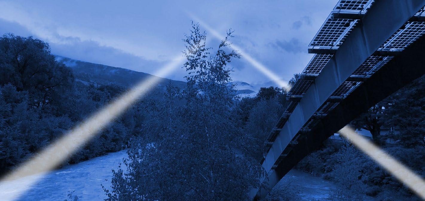Zwei leuchtende Linien treffen sich am Horizont und markieren den Zusammenfluss von Eisack und Rienz. Stefano Cagol bedient sich des Lichtes, um auf bereits Vorhandenes aufmerksam zu machen. In diesem Fall auf das fließende Wasser der beiden Flüsse, die grenzenlos ineinander übergehen und somit jegliche fiktive Grenze auflösen.