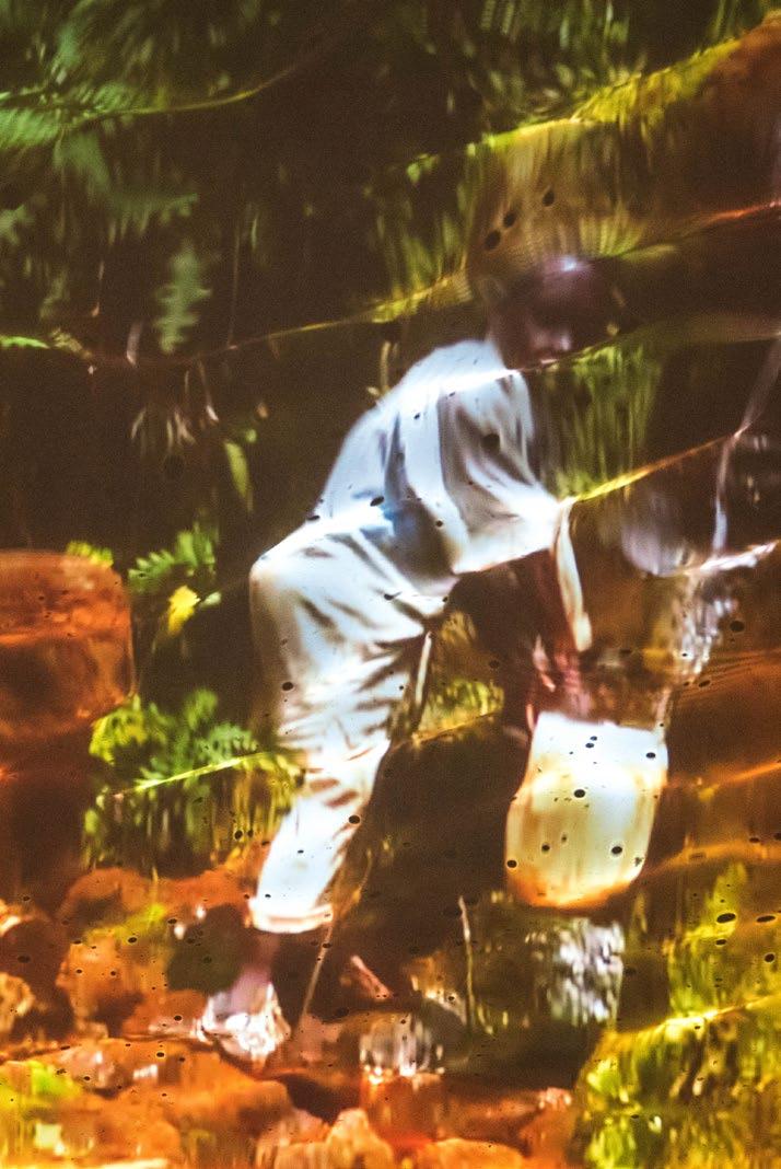 Videoaufnahmen von Menschen in Butare im Süden Ruandas, die mit Kanistern an einer Quelle Wasser holen. Um frischer Trinkwasser zu erhalten, gehört für sie ein bis zu acht Kilometer langer Fußmarsch zum Alltag. Zwei bis drei Mal täglich legen sie diesen Weg zur Wasserstelle zurück. Dann das Befüllen der Kanister und der anschließende Heimweg. Watertracks sinniert über die Zugänglichkeit des Wassers, die nicht für jeden Menschen selbstverständlich ist. Die Beschaffung dieser Lebensgrundlage bestimmt den Tagesablauf und das soziale Gefüge von Gesellschaften wie jener von Butare. Das Video wird auf ein Wasserbecken projiziert, sodass dessen Reflexionen auf der Hauswand erscheinen.