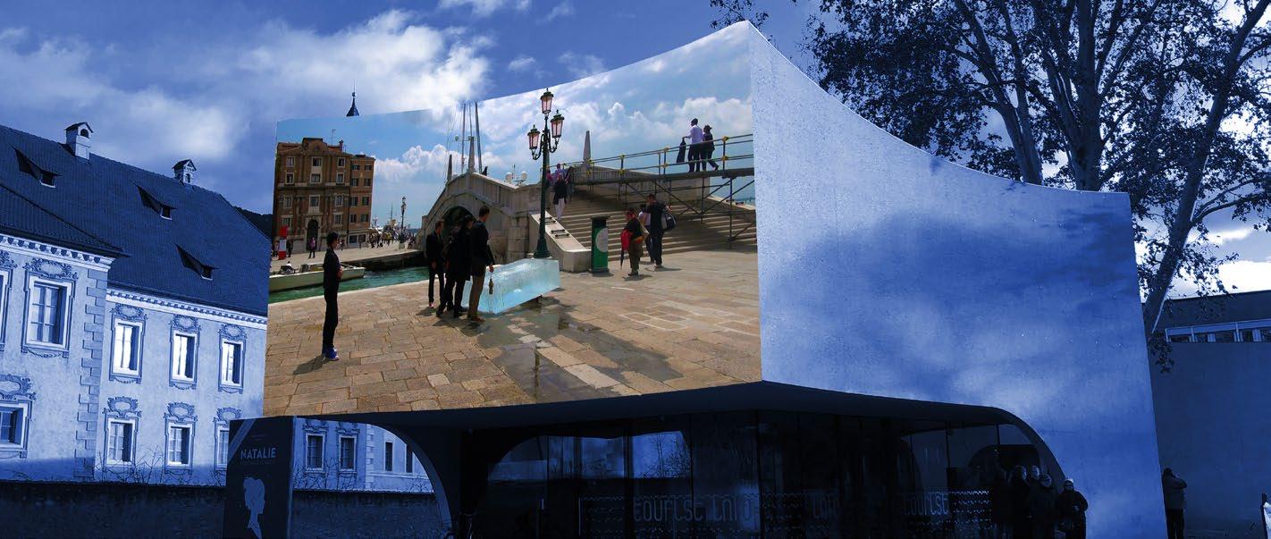 Am Zusammenfluss von Eisack und Rienz vereinen sich die beiden Gewässer und bilden einen reißenden Wasserstrom, der mit schneller Geschwindigkeit talabwärts fließt. Auf der kleinen Landzunge am Kreuzungspunkt positionierte Stefano Cagol sein Ice melting Ice – eine blinkende Installation aus Neonröhren, welche die Besucher*innen auf die Erderwärmung und das Verschwinden der Gletscher aufmerksam macht. Die warnenden Blinklettern werden zu einem Mahnmal, das auf den Klimawandel und das unausweichliche Weiterrinnen der Zeit verweist.