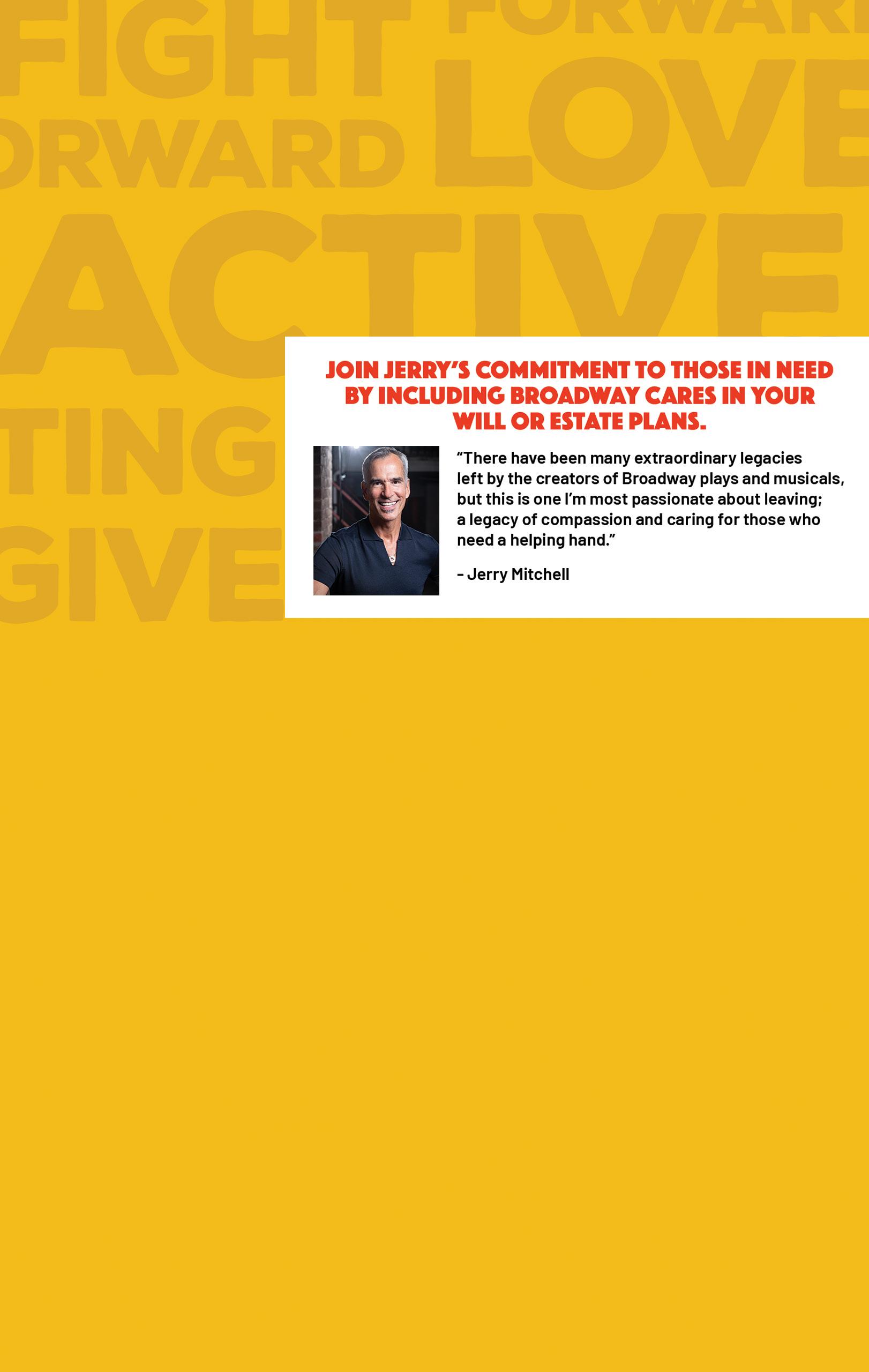 To learn more please contact Major Gifts and Planned Giving Officer Nick Mayo at mayo@broadwaycares.org or 212.840.0770, ext. 262.