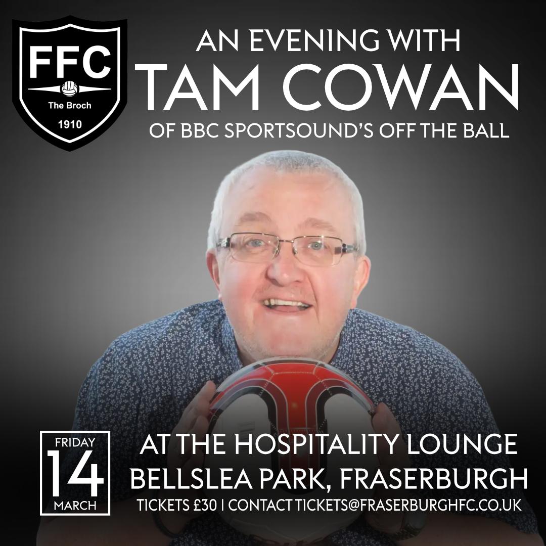 We're delighted to welcome Tam Cowan, of BBC Scotland's 'Off the Ball' programme, to the Bellslea Hospitality Lounge for an evening of stories, laughs, and unfiltered banter about referees, managers, and