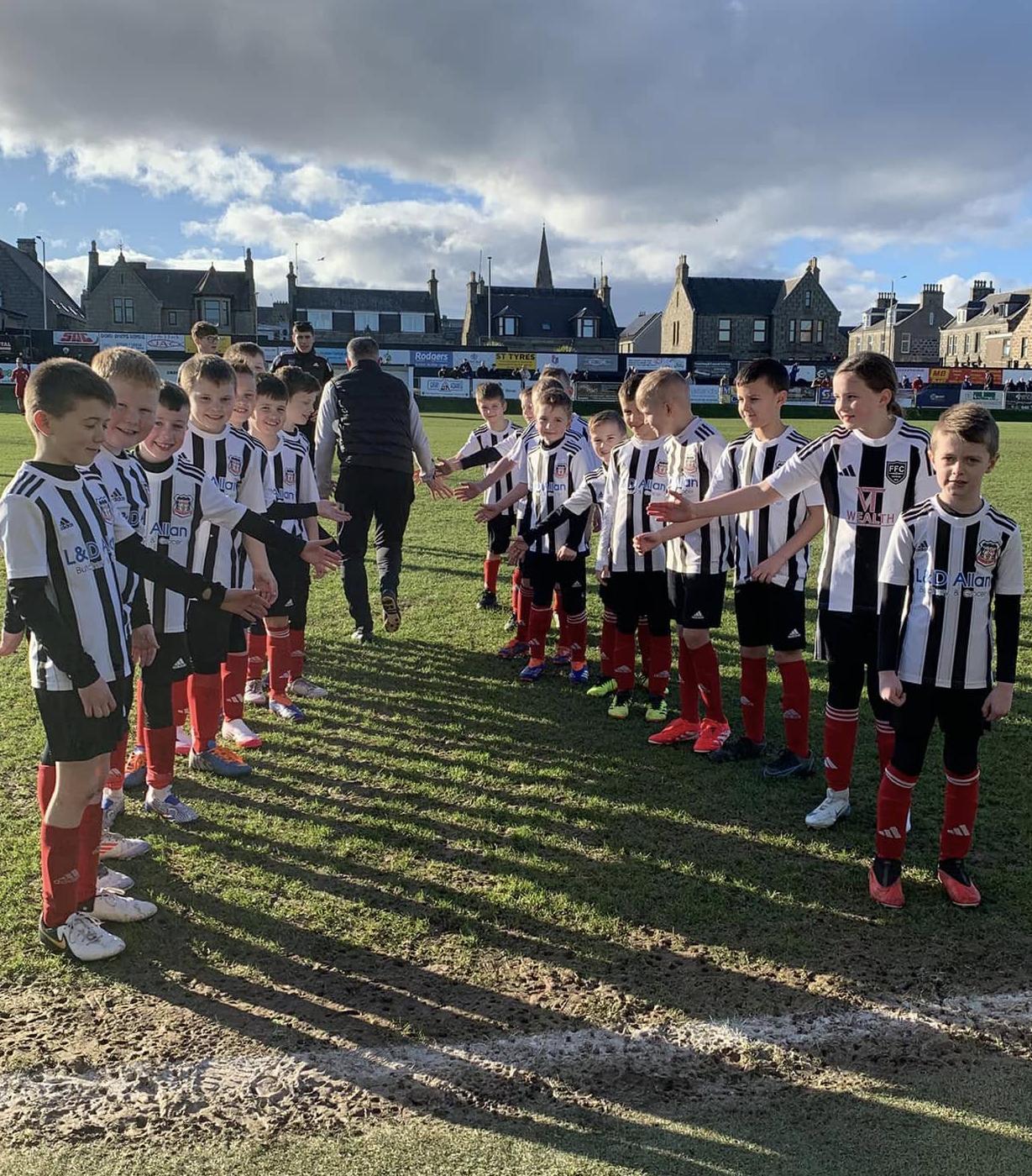 We decided some time ago that we would travel down to Glasgow on the Saturday and stay overnight.The bus was due to leave before noon so I asked if all the players could come through to Fraserburgh so that we could all leave from there together. Once I had this agreed, I heard murmurings that some youngsters were looking to line the streets when the bus left. I then thought it would be what we are all about as a community club if we gave the community the opportunity to come down and spend some time with the players before we set off.Through the world of social media, word spread out, but we were never given any inclination of what response we would get.When I parked up outside Bellslea, there weren’t many cars around and not that many people going around. Initially I thought this wasn’t going to be worthwhile but then I walked into the ground and saw the vast number of kids and parents on the Bellslea pitch waiting for the players to appear. It was truly humbling, and I think gave us all a great sense of purpose in that we weren’t just representing the club that weekend,