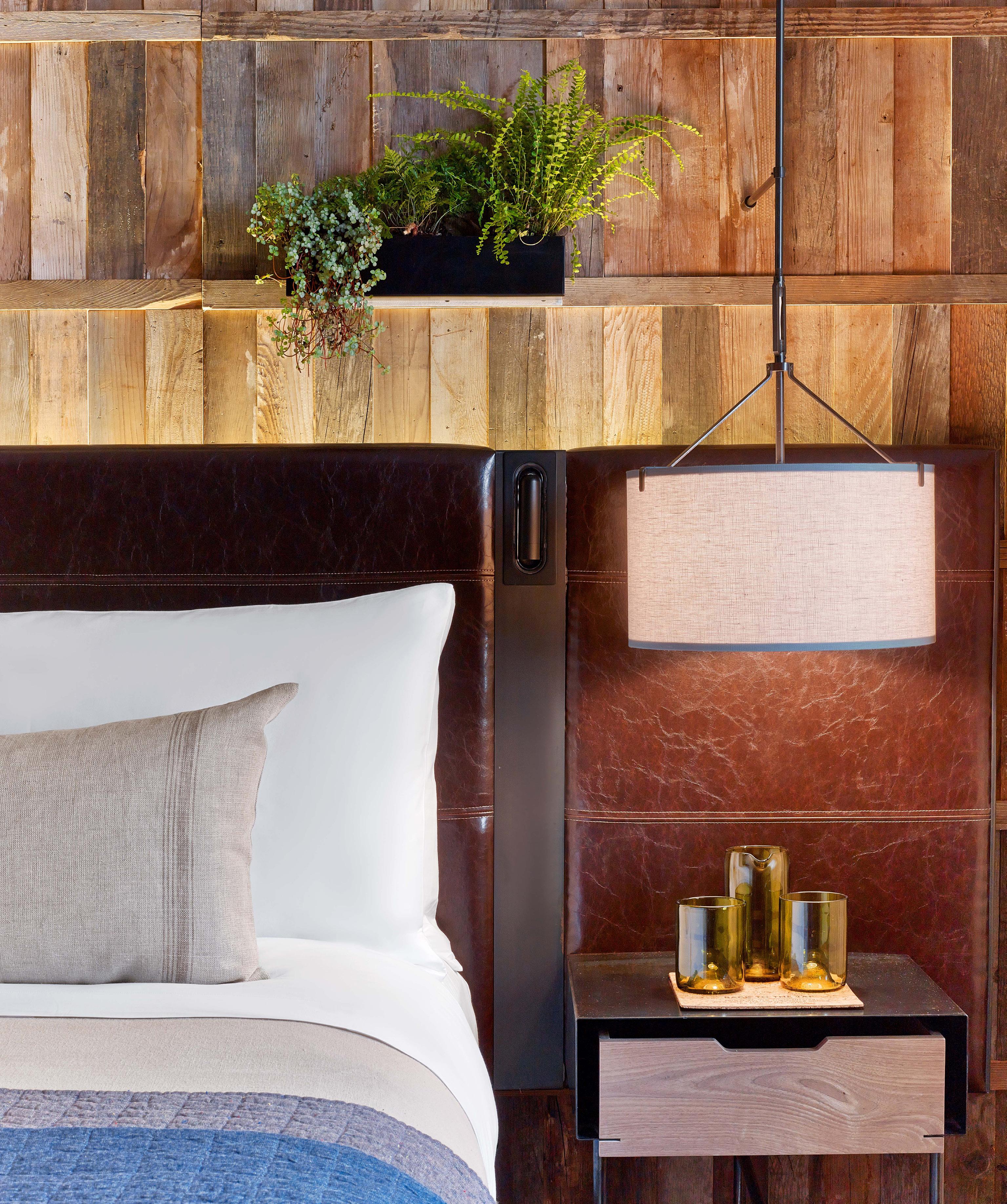 This same lush feel translates into the hotel, as its whole concept is inspired by its surroundings, welcoming guests with a three-story exterior living green wall, and furnished with reclaimed, repurposed and recycled materials such