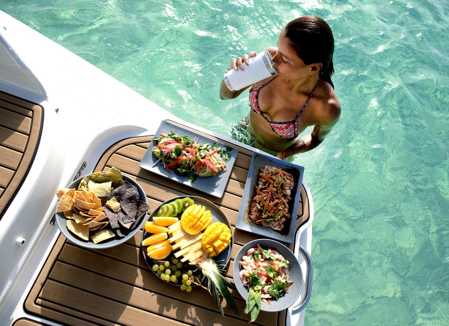 Amenities: Bathroom, an open front area with shade, full sound system with Bluetooth connectivity, snorkel equipment and premium food and beverages prepared on board with the highest-quality products. This boat is ideal for reaching shallow-water beaches. We will take you to the best spots and private beaches where you can be at one with nature.