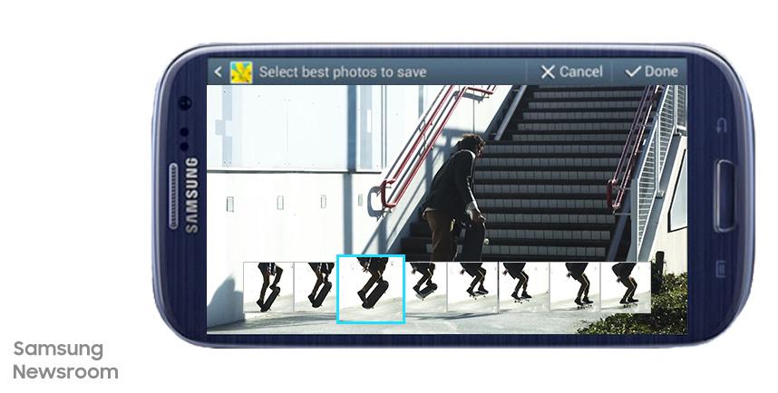 photographer and the subject occupied the same frame. Other features included Sound & Shot, which allowed users to record audio to accompany their images, and Drama Shot, which let users take multiple pictures in quick succession and combine them into an image that tells the story better than a single photo could.