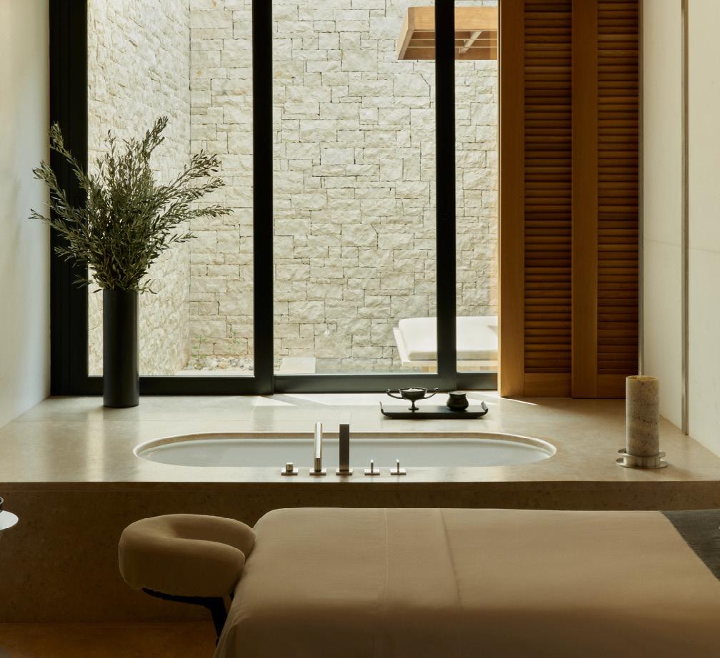 Marble, limestone, and local stone dominate the spaces, creating a seamless blend between nature and architecture. Sunlight plays an essential role, filtering through columns and open corridors to create an ever-changing canvas of shadows and reflections. The design philosophy mirrors Aman’s global identity: understated, refined, and deeply connected to its surroundings.
