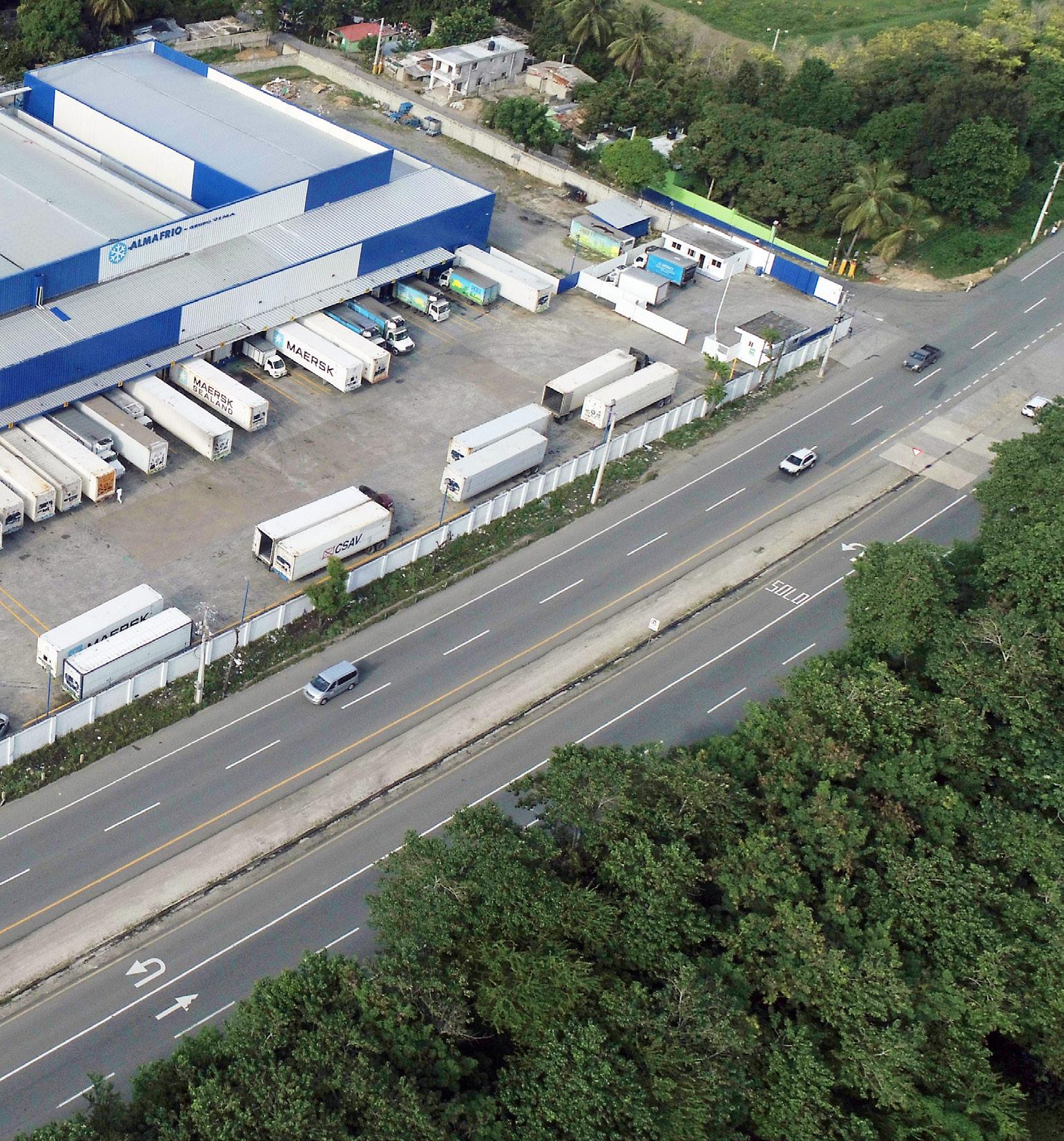 which also services different clients: the Almafrío cold storage warehouse complex, located in Santo Domingo, Dominican Republic. The facility relies on cutting-edge technology and high storage capacity, guaranteeing the cold chain for every product. The 1.7 million cubic feet space boasts 13 cargo bays and a 7,500 ton capacity. Its advanced cooling system has a refrigeration range of 35ºF to 46ºF and a -0.4ºF to -22ºF.