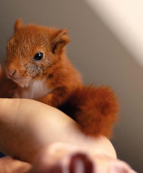 Houdini, an orphaned red squirrel kit cared for by our team © AJCritch Wildlife