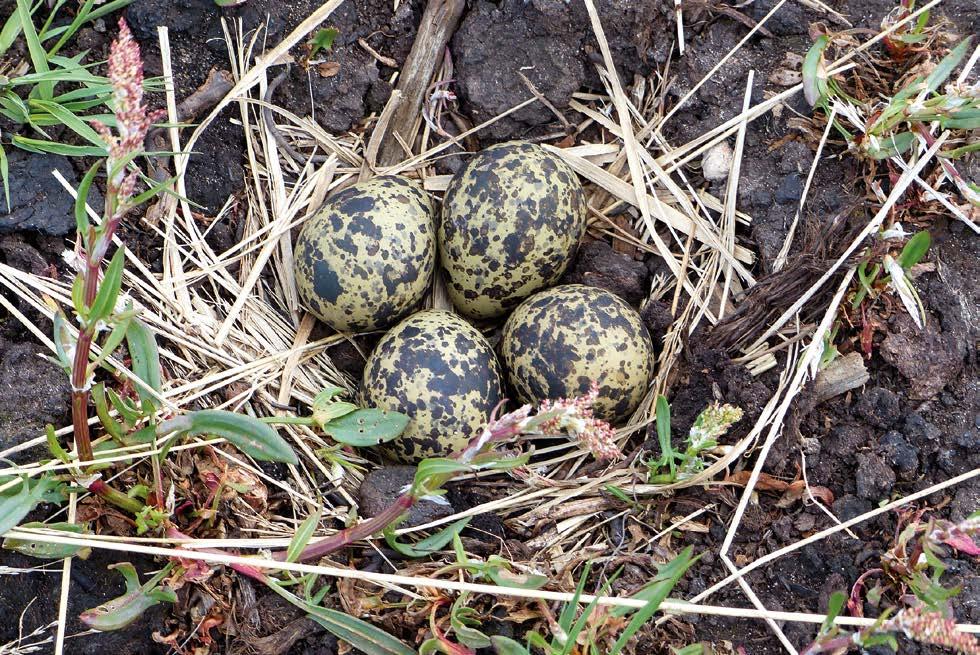 lay brown mottled eggs and their chicks are little fluffy brown splodges. This camouflage is important in such an exposed existence; lapwings love low vegetation and bare ground."