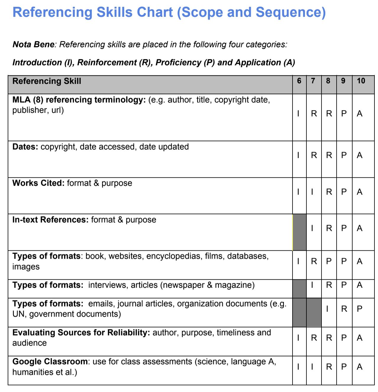 Referencing Skills (Scope and Sequence)