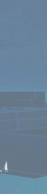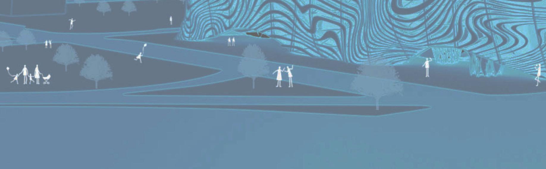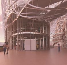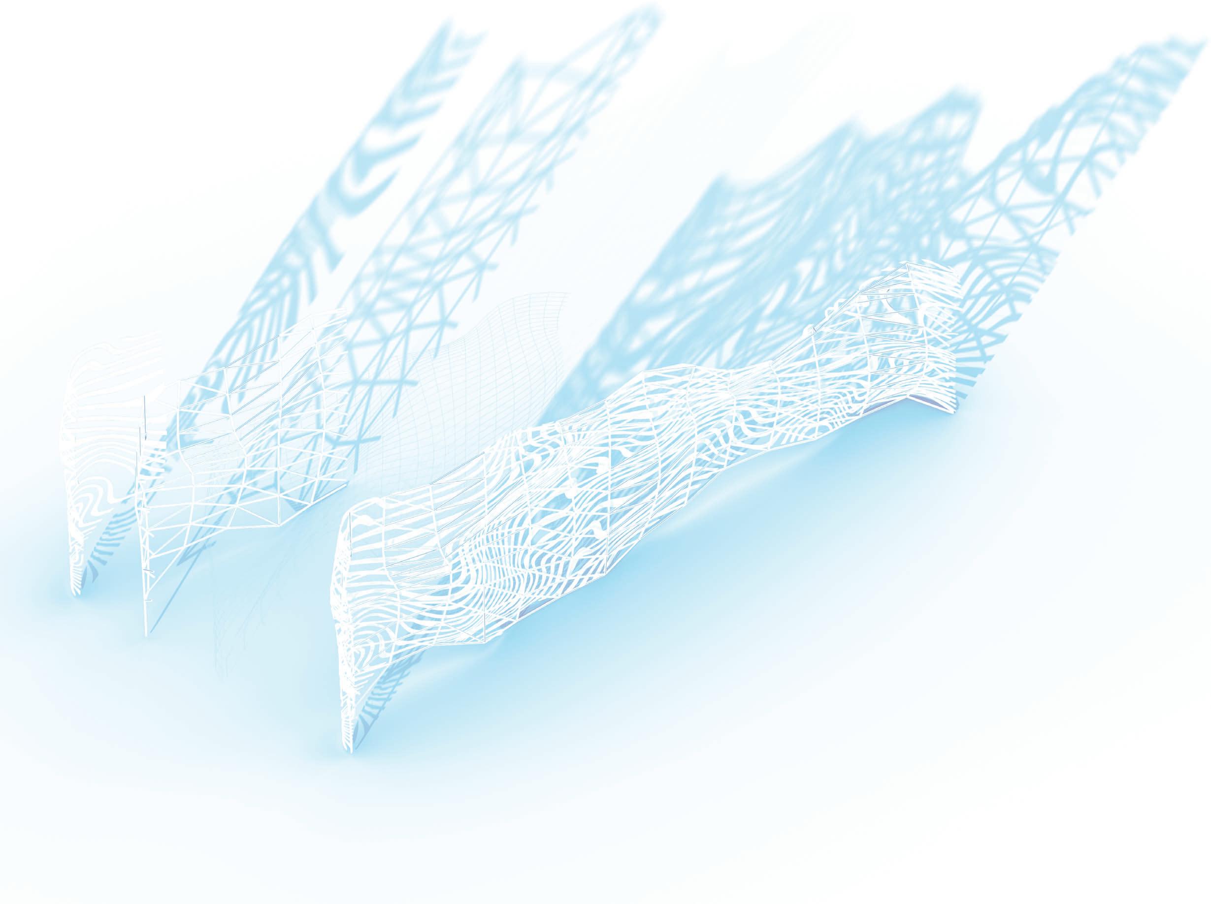 However, the building’s facade is only the first layer of disclosure. As visitors walk through the lifted curtain-like facade, the vertical circulation is further revealed by geometric floor slabs. Heavenly light and renewing energy is then revealed by towering light wells. Finally, the building reveals new characteristics of itself at night when serpentine shadows are casted throughout the city.