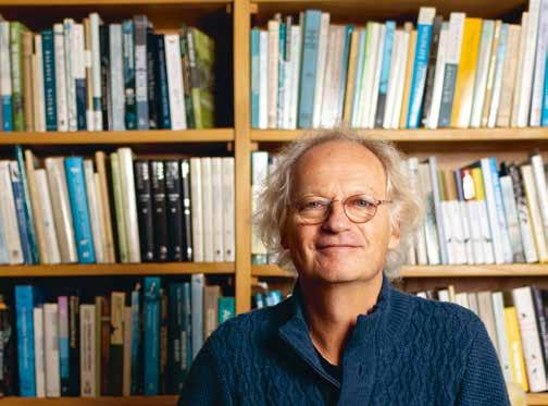 ‘In de loop van mijn eerste studiejaar ging ik waddenvogels tellen op Ameland. Er werd gefluisterd dat er in Mauretanië een plek was waar veel van onze wadvogels ‘s winters naartoe zouden trekken, maar niemand was er ooit geweest. Met drie anderen reisde ik naar Mauretanië. Ik overleefde het ternauwernood vanwege een virusinfectie. Maar toen ik terug was dacht ik: Hier wil ik mijn leven aan besteden. En zo is het ook gegaan. Denk niet dat ik een flitscarrière had! Er was geen enkele behoefte aan ons soort mensen toen ik afstudeerde. Ik deed anderhalf jaar vervangende dienst en was tweeenhalf jaar werkloos. Daarna begon ik aan mijn promotieonderzoek, bij zee-instituut NIOZ op Texel. Voor mij een droom. Als kleine jongen wilde ik aan walvissen werken. Ik droomde niet van het hoogleraarschap. Maar de RUG deed een beroep op mij. Ik was vanaf 2003 hoogleraar dierecologie, tot WWF en Vogelbescherming mij in 2011 als het ware uitkochten en een leerstoel trekvogelecologie voor mij instelden. Toen kon ik mij volledig richten op waar ik het best in ben: jonge mensen coachen en trekvogelonderzoek. Die hele kleine beestjes die de wereld overvliegen en ons van alles te vertellen hebben over onze veranderende leefomgeving, wat een fantastisch verschijnsel is dat toch. Behalve in de Waddenzee, hebben we programma’s opgezet in Noordwest-Australië, China, West-Afrika, Zuid-Amerika en Alaska. Als hoogleraar heb ik geprobeerd RUG en NIOZ te verbinden. Die twee vullen elkaar fantastisch aan met wat ze kunnen, doen en zijn. Maar de fysieke afstand tussen de twee instituten en bureaucratische hindernissen maakten samenbrengen uiterst lastig. Toch is er nu BirdEyes, in Leeuwarden, precies tussen Texel en Groningen in. Een interfacultair, interdisciplinair instituut dat de vogels aan het woord laat. Via wetenschappers, maar ook via verhalenvertellers of beeldend kunstenaars. Het is vooralsnog een vijfjarig experiment. We zitten in het derde jaar. Het loopt als een tierelier. Wat denk je van een werkportefeuille van 27 miljoen euro? Ik ben iets langer gebleven in verband met de overdracht. Nu ik zeker weet dat BirdEyes in veilig vaarwater is, ga ik met emeritaat.’