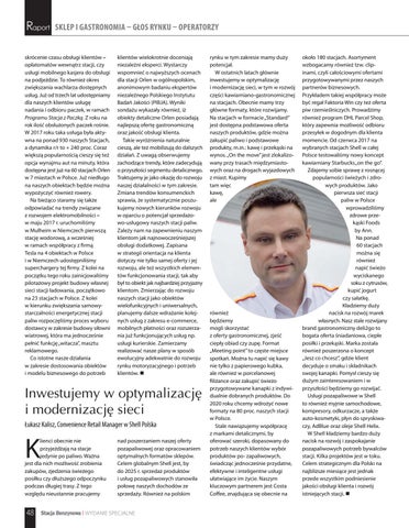 rynku w tym zakresie mamy duży potencjał. W ostatnich latach głównie inwestujemy w optymalizację i modernizację sieci, w tym w rozwój części kawiarniano-gastronomicznej na stacjach. Obecnie mamy trzy główne formaty, które rozwijamy. Na stacjach w formacie „Standard” jest dostępna podstawowa oferta naszych produktów, gdzie można zakupić paliwo i podstawowe produkty, m.in.: kawę i przekąski na wynos. „On the move” jest zlokalizowany przy trasach międzymiastowych oraz na drogach wyjazdowych z miast. Kupimy tam więc kawę, ale